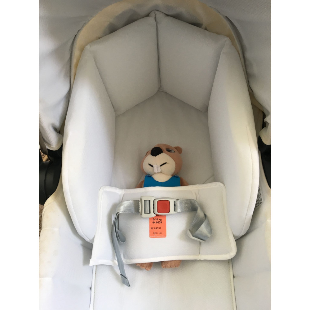 Система состоит из подушки для защиты головы, ремней-переходников, которые позволяют крепить люльку к ремням безопасности автомобиля, и ремешка-крепления, который нужно закрепить внутри люльки.