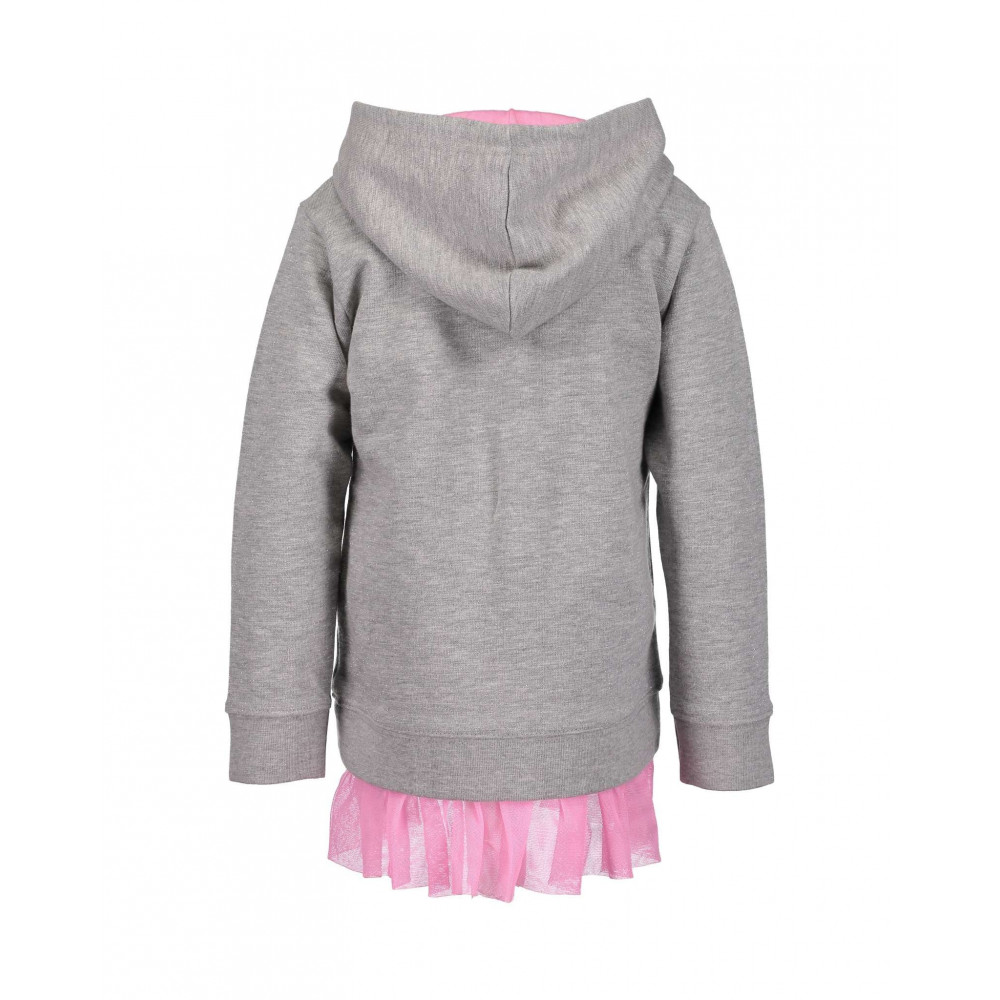 Стильный трикотажный свитер с капюшоном необходим в гардеробе девочки. Украшает свитер аппликация спереди, рюш снизу розового цвета, подкладка капюшона тоже розовая . Размер изделия определяется ростом Вашего ребенка.