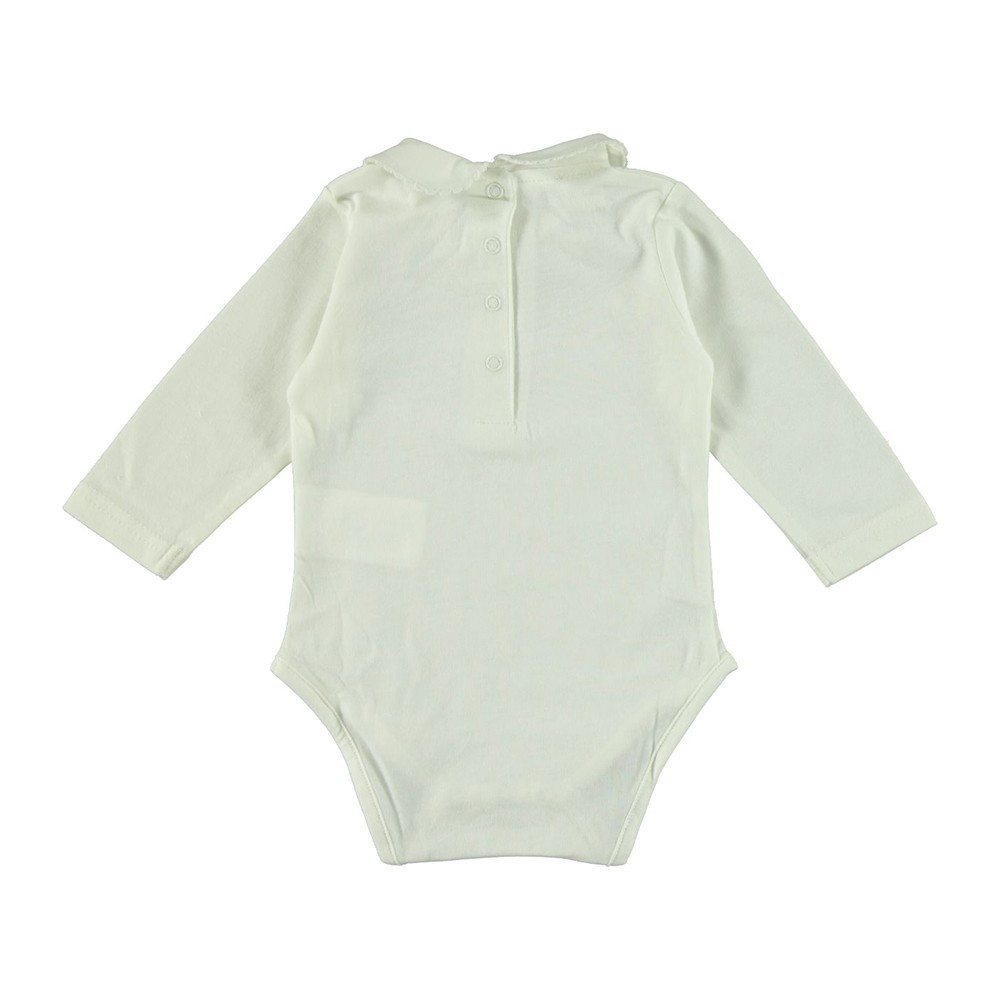 Трикотажный боди IDO удобен и практичен и изготовлен из 100% хлопка. Длинный рукав, воротничек с кружевом отворотом, застежка на спинке-кнопки. Для удобного и быстрого одевания есть застежки кнопки между промежностью.
