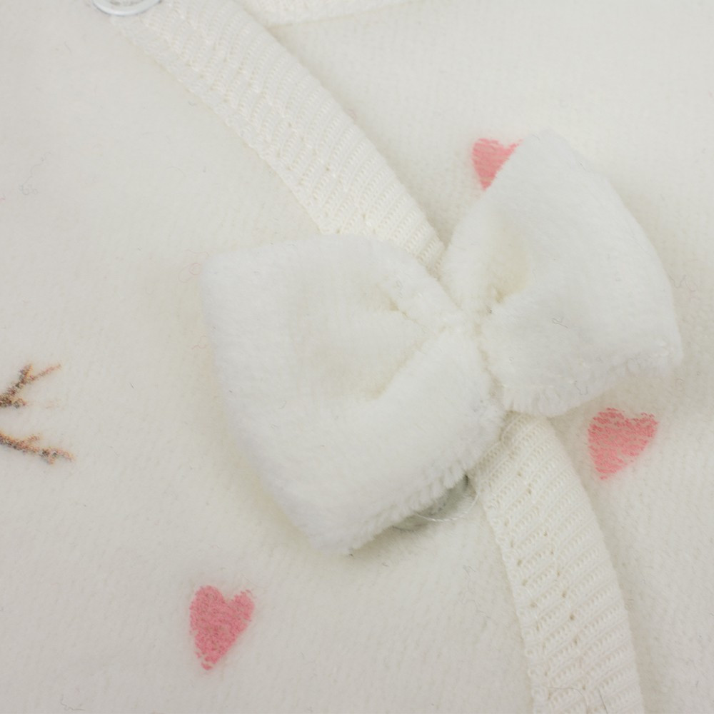 Велюровый трикотажный человечек Babybol для девочки необходимая вещь в гардеробе Вашего ребенка. Тепло, уют, комфорт ему гарантированы. Спереди человечек украшает веселый детский рисунок на зимние мотивы. Застегивается спереди на кнопки по всей длине. Украшением служит замечательный бантик.