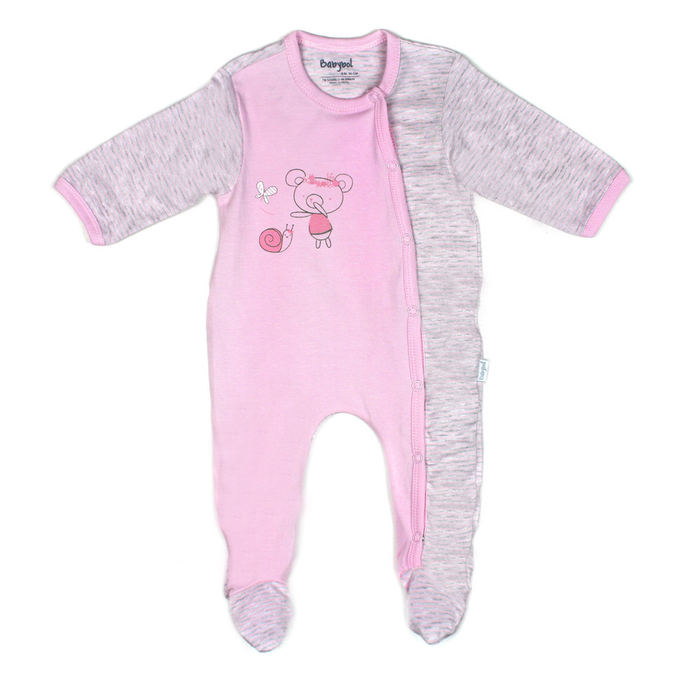 Замечательное предложение для новорожденной девочки Babybol - трикотажный цветной комбинезон-человечек с боковой застежкой спереди на кнопки по всей длине, а также между ножек, что существенно облегчает и ускоряет процесс одевания. Для предотвращения растягивания горловина, и рукава обработаны однотонной трикотажной резинкой. Человечек украшает веселый, солнечный летний рисунок.