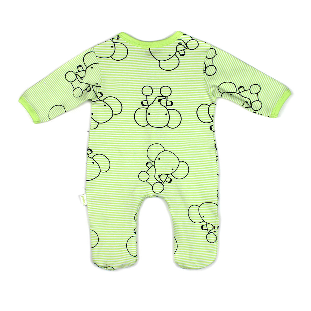 Замечательное предложение для новорожденных деток - трикотажный полосатый комбинезон-человечек Babybol с рисунком слоников по всему полю. Застежкой расположена спереди кнопки по всей длине, есть так же кнопки и между ножек, что существенно облегчает и ускоряет процесс одевания и смены подгузника.