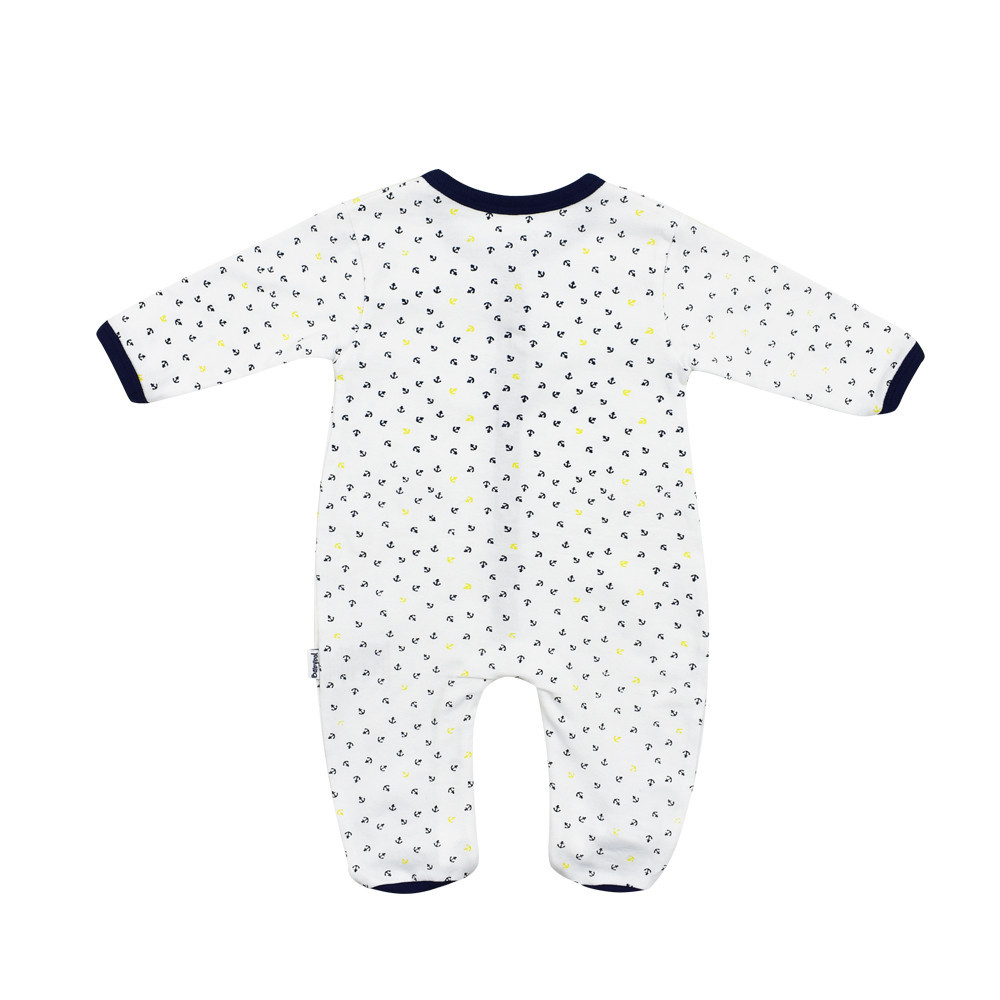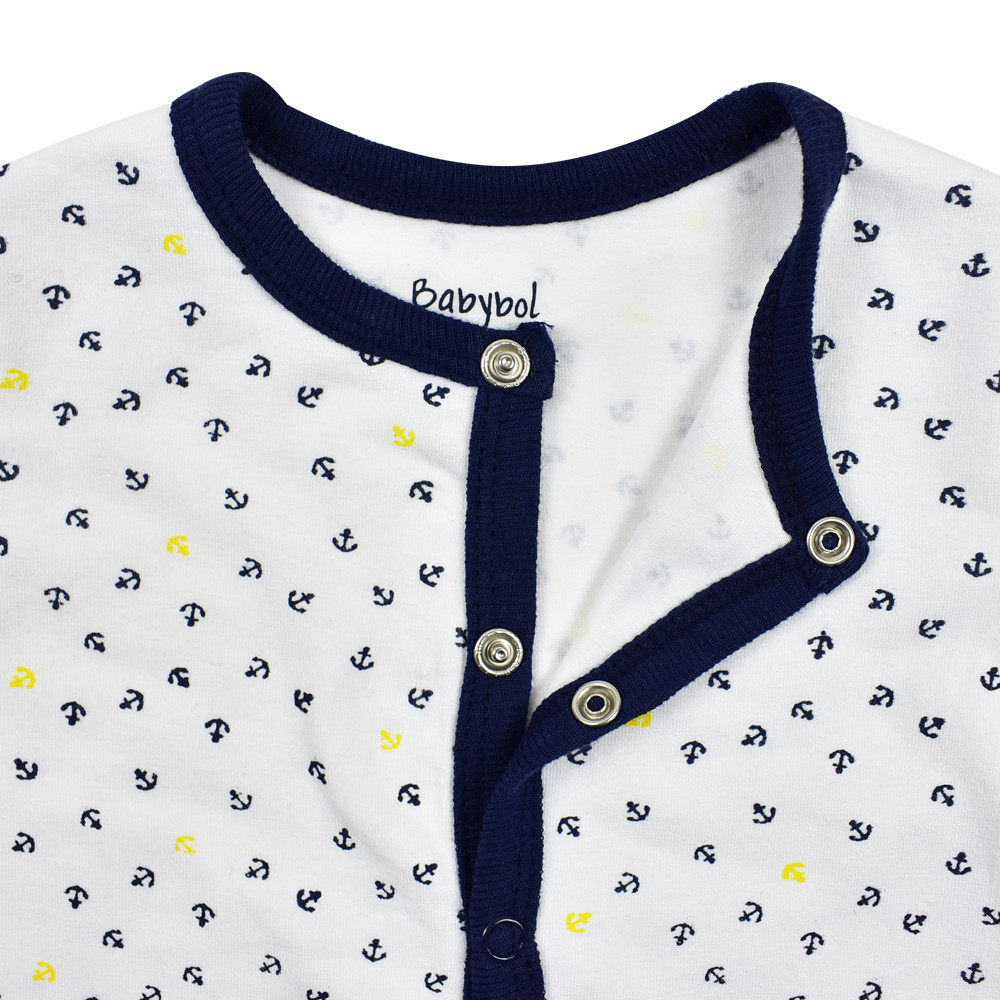 Замечательное предложение новорожденному мальчику от Babybol трикотажный комбинезон-человечек-ромпер с застежкой спереди по центру на кнопки по всей длине, и между ножек, что существенно облегчает и ускоряет процесс одевания и смены подгузника. Для предотвращения растягивания горловина, края обработаны контрастной трикотажной резинкой.