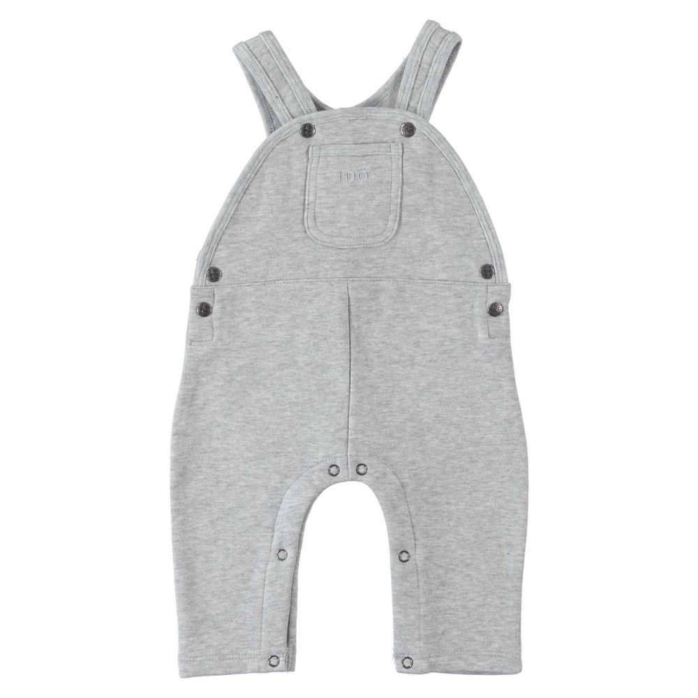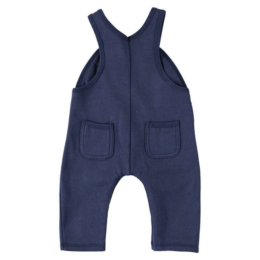 Полукомбинезон для малыша изготовлен из трикотажа темно-синего цвета. На груди комбинезона есть кармашек с вышивкой іDO, сзади два накладных кармана. Бретели застегиваются на кнопки, между ножками есть кнопки для удобства переодевания подгузника. Отсутствие носочков позволяет дольше использовать человечек для быстрорастущего малыша