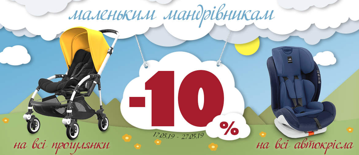 Только с 17.05 по 27.05 покупайте прогулочные коляски со скидкой -10% + На все автокресла скидка так же - 10%!