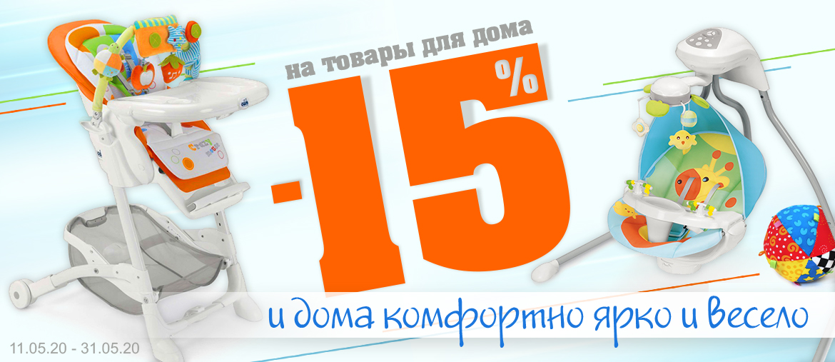 -15% на детские стульчики, кроватки, укачивающие центры, шезлонги, ванночки.