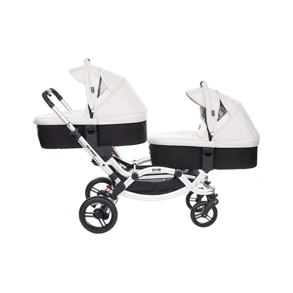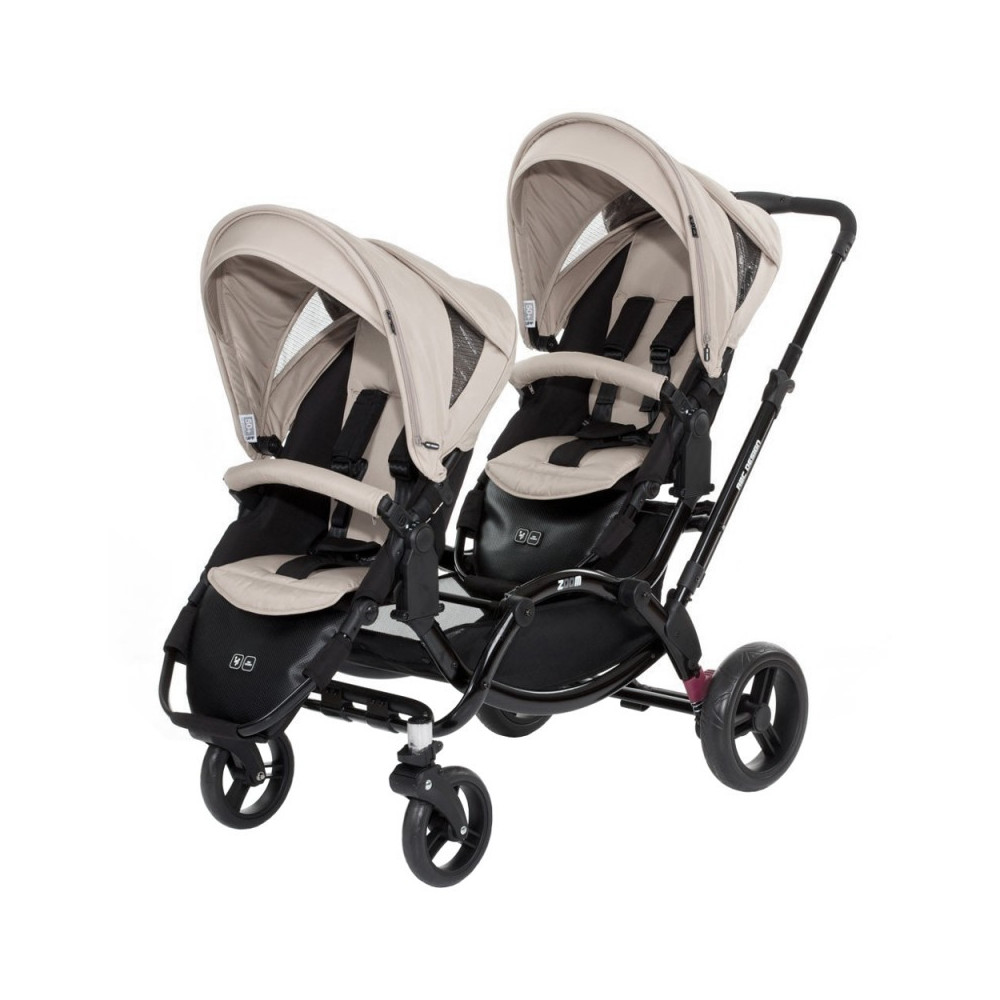 На шасси коляски можно устанавливать люльку, прогулочное сидение или автокресло гр.0+ в разных комбинациях. В зависимости от потребностей детей и пожеланий родителей на шасси можно устанавливать модули в следующих комбинациях – 2 прогулочных блока, 2 люльки, 2 автокресла, прогулочный блок и люлька или автокресло.