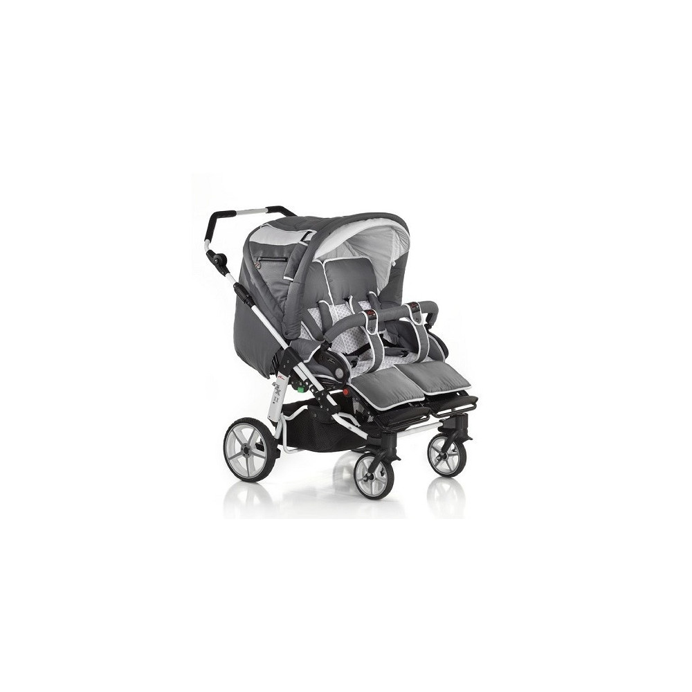 Детская коляска для двойни с двумя независимыми прогулочными блоками и двумя отдельными люльками-переносками сделают коляску Hartan ZX II незаменимым помощником родителям, чье счастье не умещается в одной коляске. Шасси коляски, с передними вращаемыми колесами, оснащено стояночным ножным тормозом и ручкой регулируемой по высоте и углу наклона.