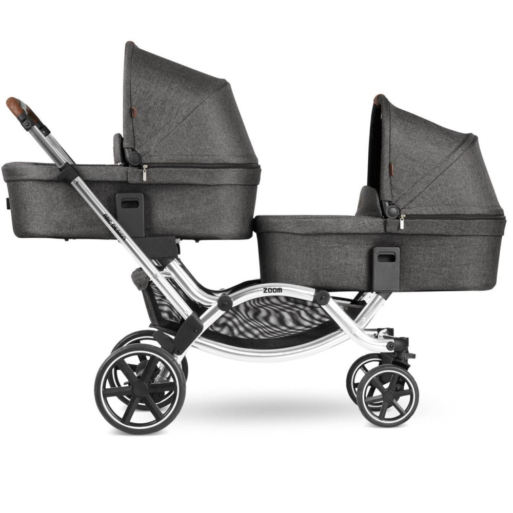 Универсальная коляска для двойни ABC Design Zoom – это очень функциональная и компактная коляска для двойни или погодок. Компактность данной коляски обеспечивается за счет расположений сидений друг за другом.