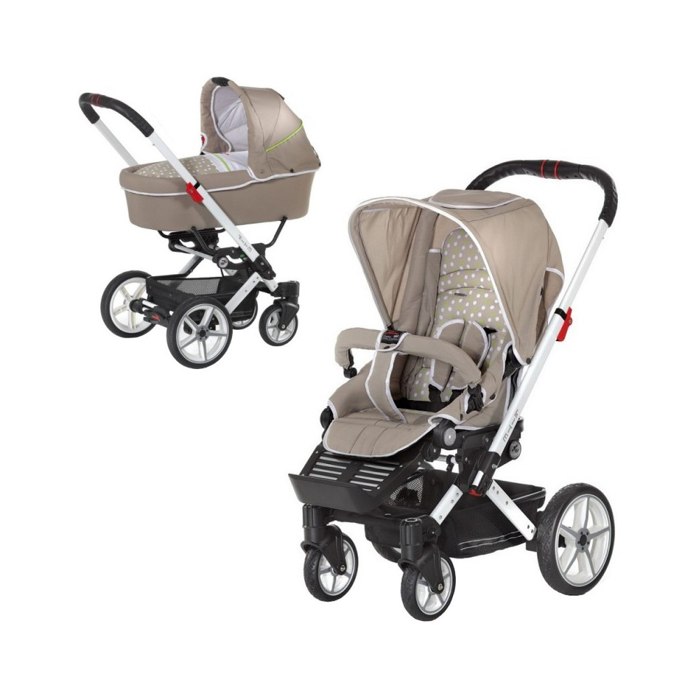 Входящая в комплект люлька для новорожденного достаточно просторна и в то же время уютна – кроха будет чувствовать себя в ней отлично даже при длительных прогулках. Сидение прогулочного блока также очень комфортно – оно может буквально «расти» вместе с малышом благодаря регулируемой подножке, а изменяемый угол наклона спинки позволит ребенку подремать во время прогулки, в то время как складной капюшон защитит его от жгучих солнечных лучей.