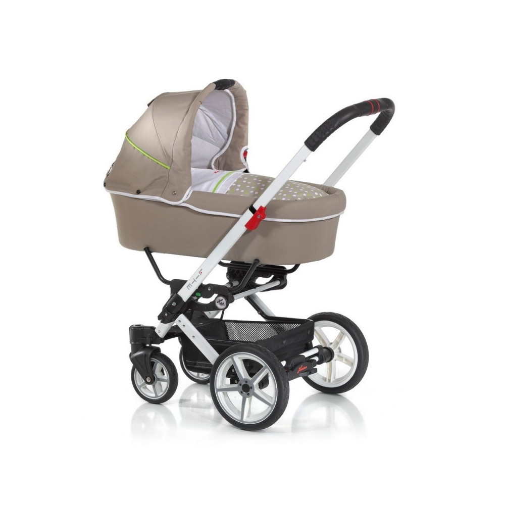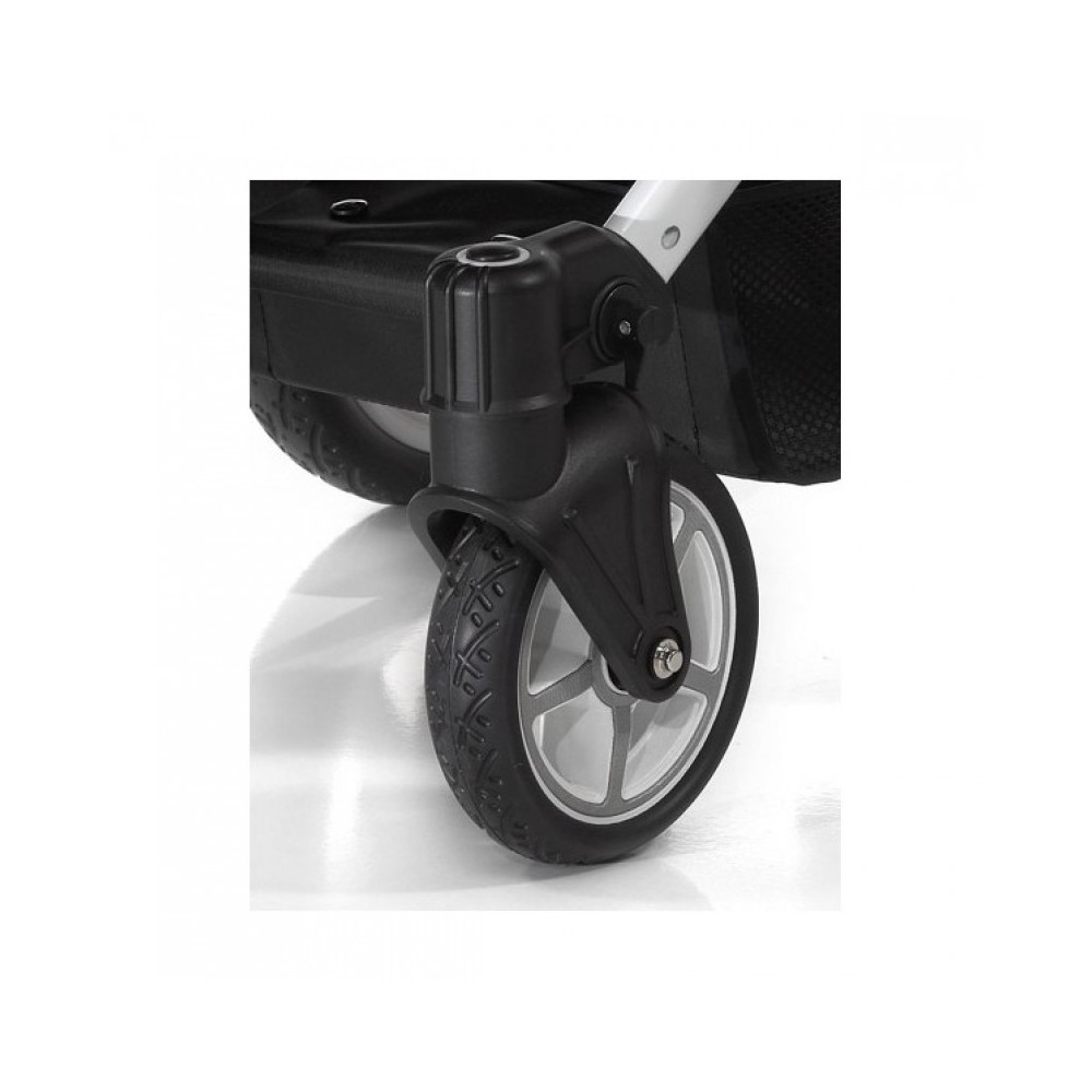 За счет передних поворотных колес управлять коляской – сплошное удовольствие, ведь маневренность и способность лавировать в извилистых проходах делают ее по-настоящему мобильной. Кроме того, создатели коляски позаботились о том, чтобы прогулки по бездорожью больше не были для Вас проблемой – для этого задние колеса коляски большего диаметра по сравнению с передними. Приятное на ощупь покрытие ручки также поможет родителям не испытывать дискомфорта во время прогулок.
