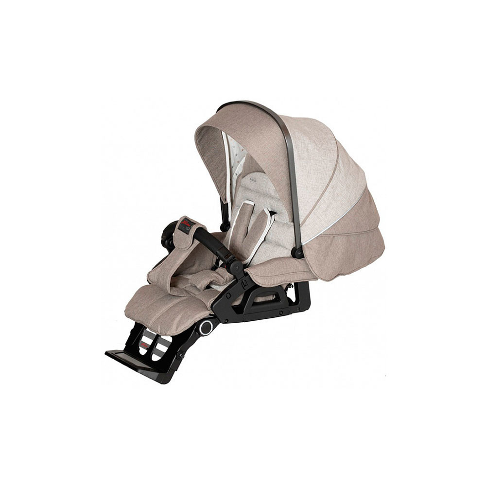 Одним движением руки шасси коляски легко и компактно складывается, а люлька – становится абсолютно плоской. Ваша коляска таким образом поместится в багажнике даже маленького автомобиля. Еще одна отличительная особенность данной модели – это то, что она является одной из самых легких колясок: вес коляски составляет всего 12 кг.
