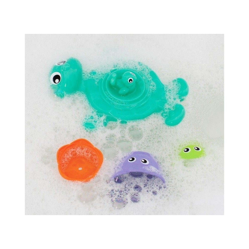 Игрушки для ванной Playgro Черепашка с друзьями – это прекрасная оригинальная игрушка для ванной Playgro в виде забавной черепашки обязательно понравится малышу. Игрушка для купания состоит из трех съемных деталей, которые превращаются в отдельные игрушки. Кроме этого, новая забава изготовлена из качественного экологически чистого материала, который не содержит никаких вредных примесей или добавок. Материал игрушки протестирован ведущими специалистами в области детской педиатрии и соответствуют всем санитарно-гигиеническим нормам. Яркая расцветка игрушки привлекает внимание ребенка, поэтому малышам так нравится играть с веселой черепашкой. Эта чудесная игрушка для ванной станет прекрасным подарков для вашего крохи.