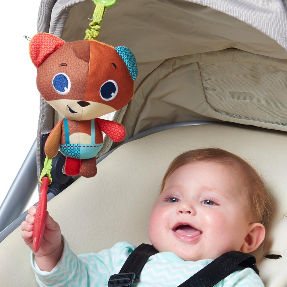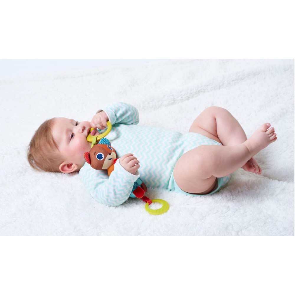 Подвеска-прорезыватель Лисенок Кристофер:Можно потянуть лисенка вниз, растягивая веревочку, а если отпустить — зверек будет подниматься и тихонько вибрировать, создавая дрожащий эффект. Такая забавная игра надолго увлечет карапуза.