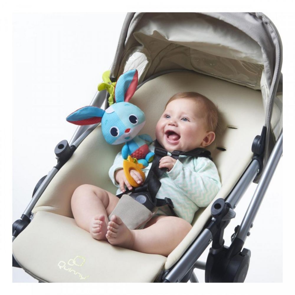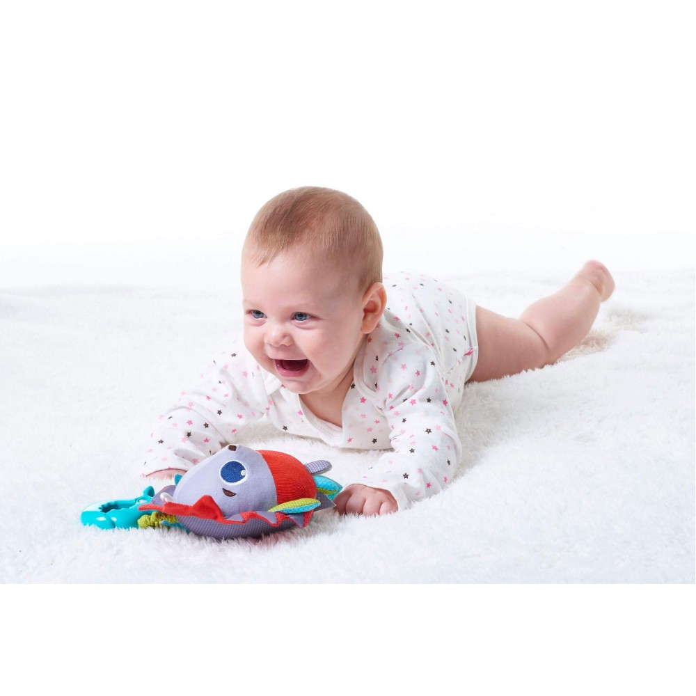 Игрушка подвешивается на любые детские аксессуары с помощью удобной клипсы-крабика: на развивающий коврик с дугами, на бортики кроватки или манежа, на коляску и автокресло.