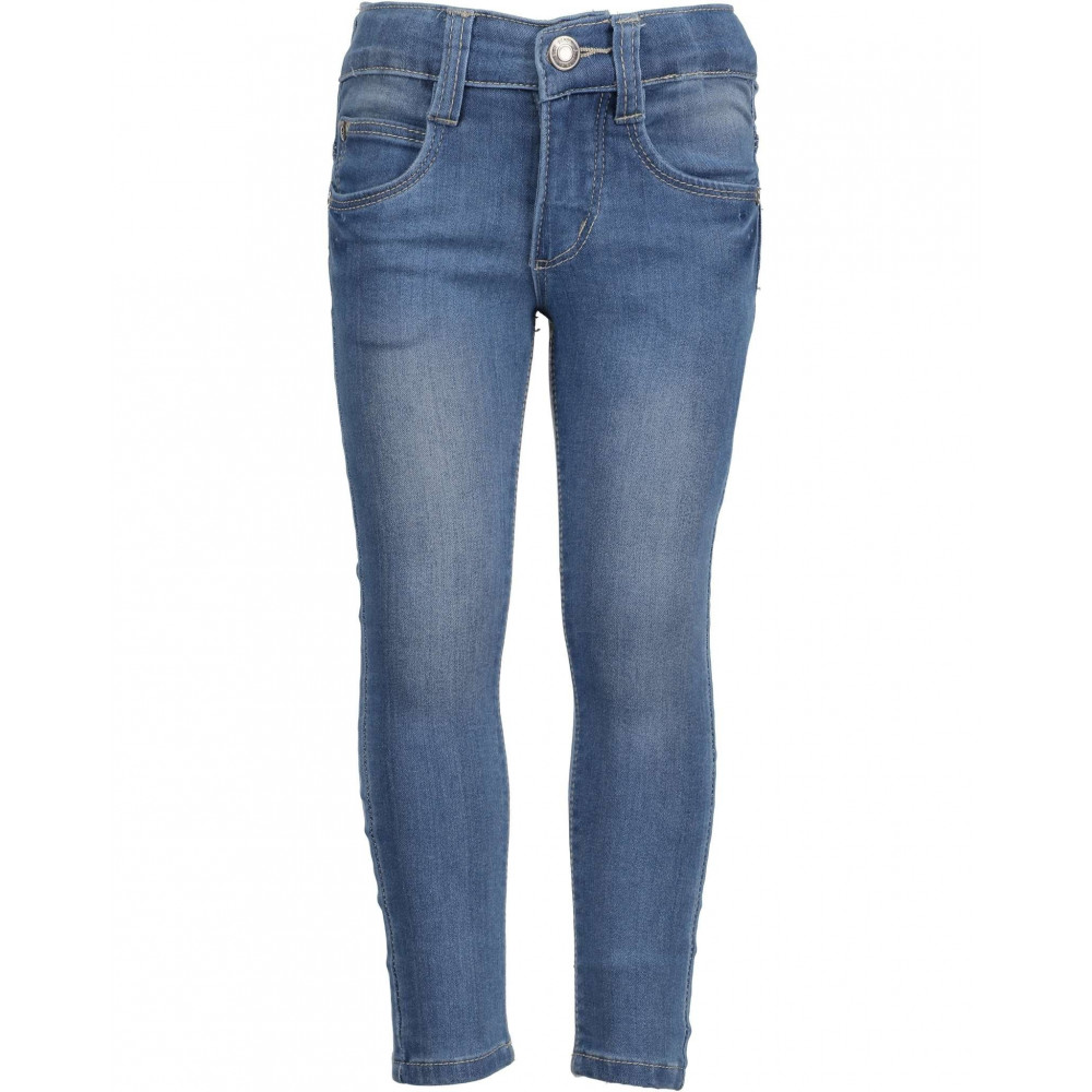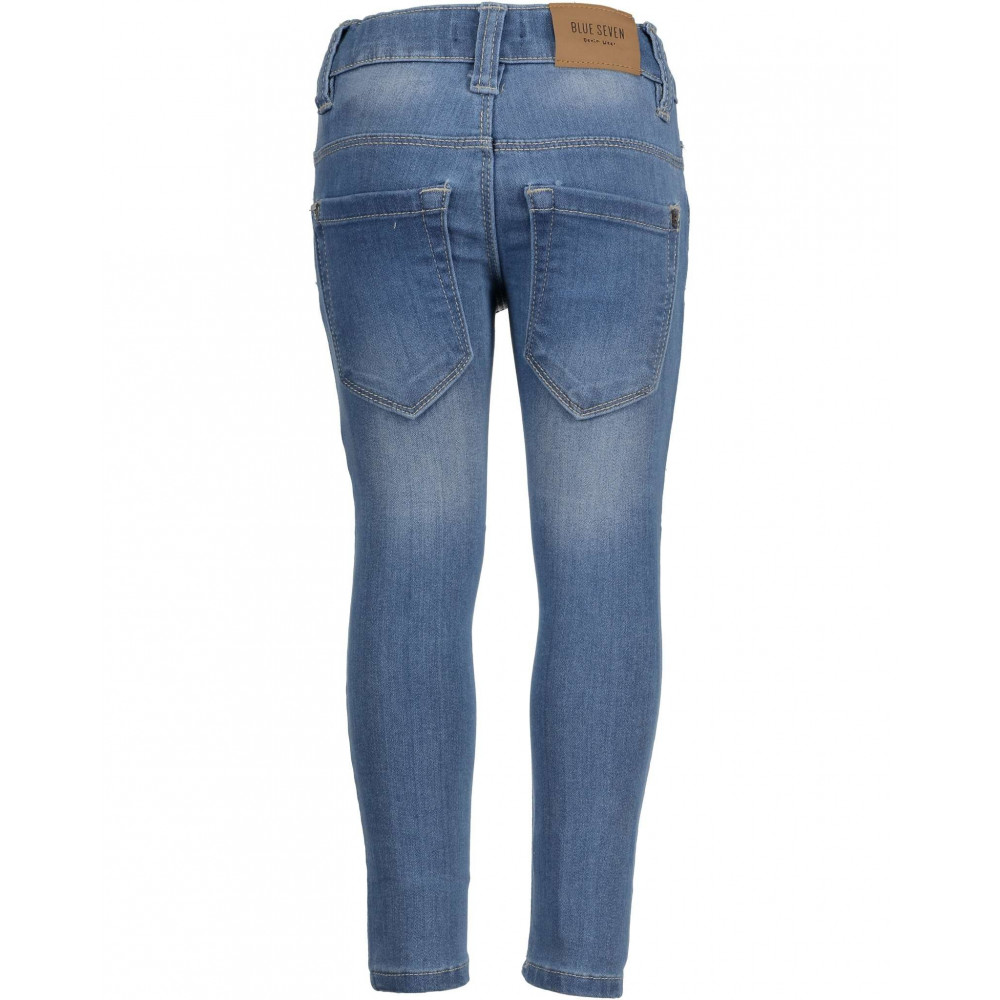 Джинсы - незаменимый предмет в гардеробе Вашей девочки. Украшают джинсы модные потертости, и удобные карманы спереди, сзади отрезная кокетка и два накладных кармана, объем талии регулируется вшитой резинкой, которая затягивается, книзу джинсы заужены. Размер изделия определяется ростом Вашего ребенка.