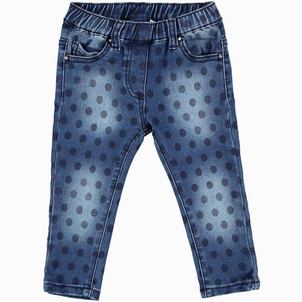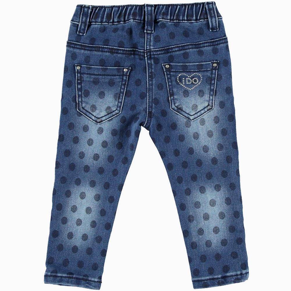 Зауженные джинсы с потертостями, в горохи модные и стильные IDO предлагает нашим девочкам. Пояс на талии с резинкой, спереди отстрочены карманы, сзади накладные карманы.