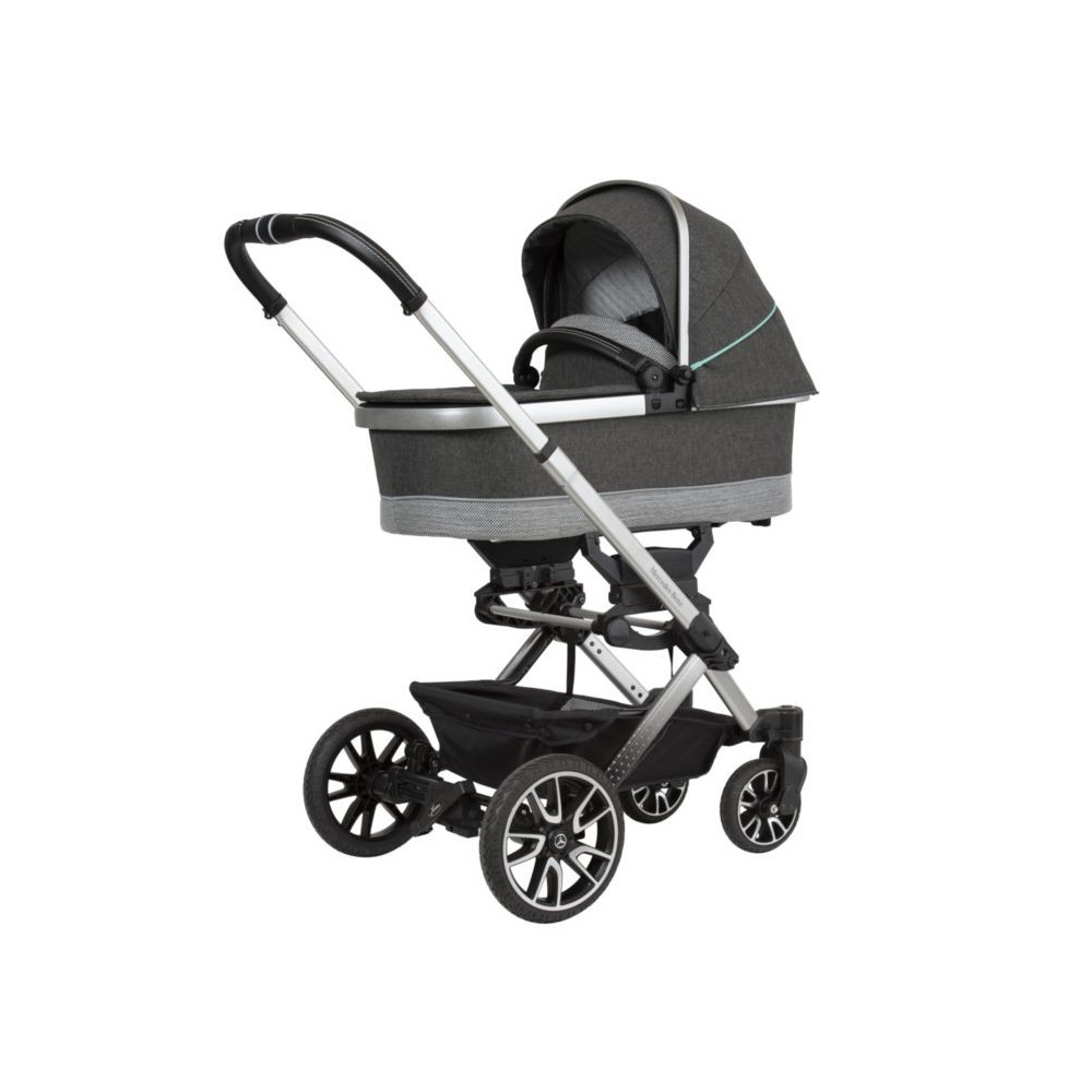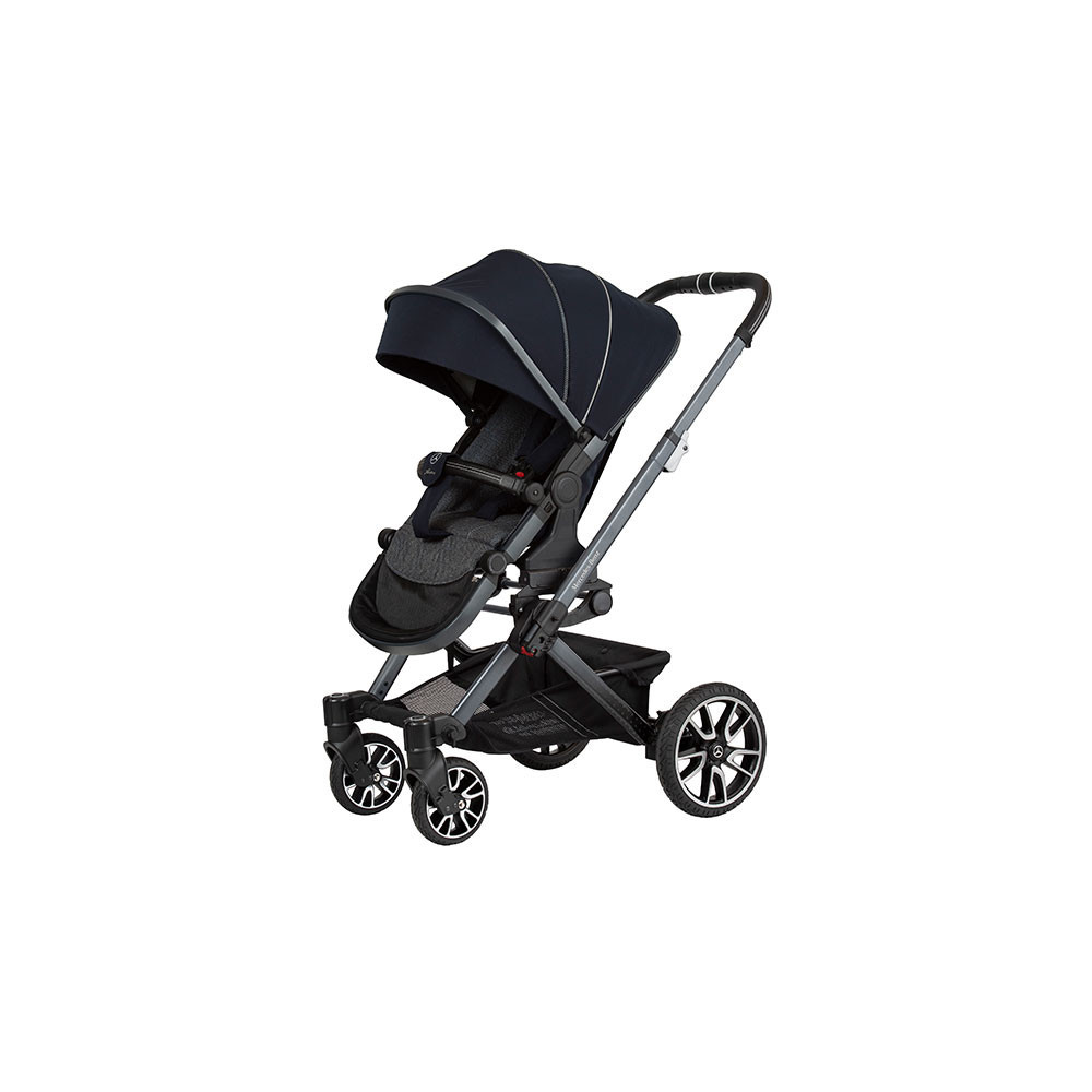 Детская коляска 2 в 1 для детей с рождения до 4 лет Hartan Avantgarde Mercedes-Benz Collection изготовлена базе нового шасси HARTAN VIP отличается улучшенной амортизацией, колесами увеличенного размера, новым прогулочным блоком GTX, и разработана дизайнерами компании Mercedes-Benz! Пятиспицевые колеса выполнены в дизайне AMG и украшены логотипом Mercedes-Benz.