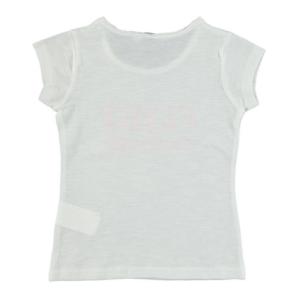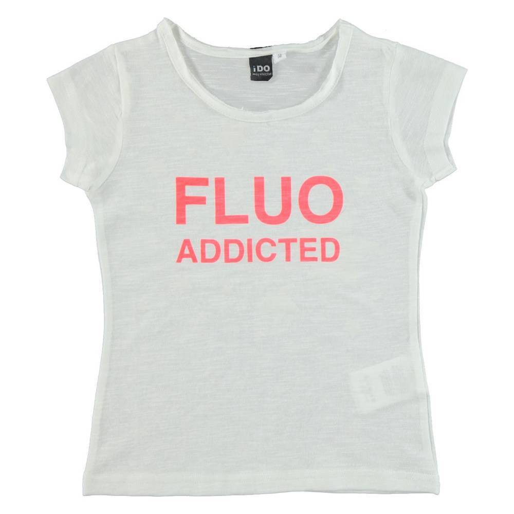 Трикотажная футболка іDO изготовлена из хлопка. Перед футболки украшен принтом с печатным текстом (цвет рисунка меняется от солнечного света), рукавчики с небольшим отворотом. Замечательно сочетается с юбками, шортами.