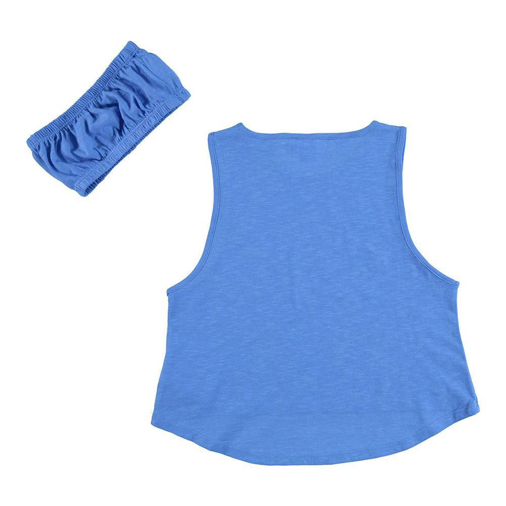Комплект для девочки состоит из майки и повязки для головы. Трикотажная хлопковая майка iDO с трикотажной резинкой на горловине и пройме, украшена спереди печатным текстом, низ майки округлен и спинка длиннее переда. Повязка в основной тон майки.