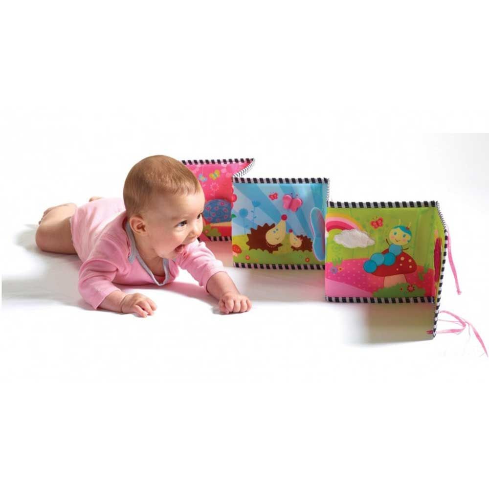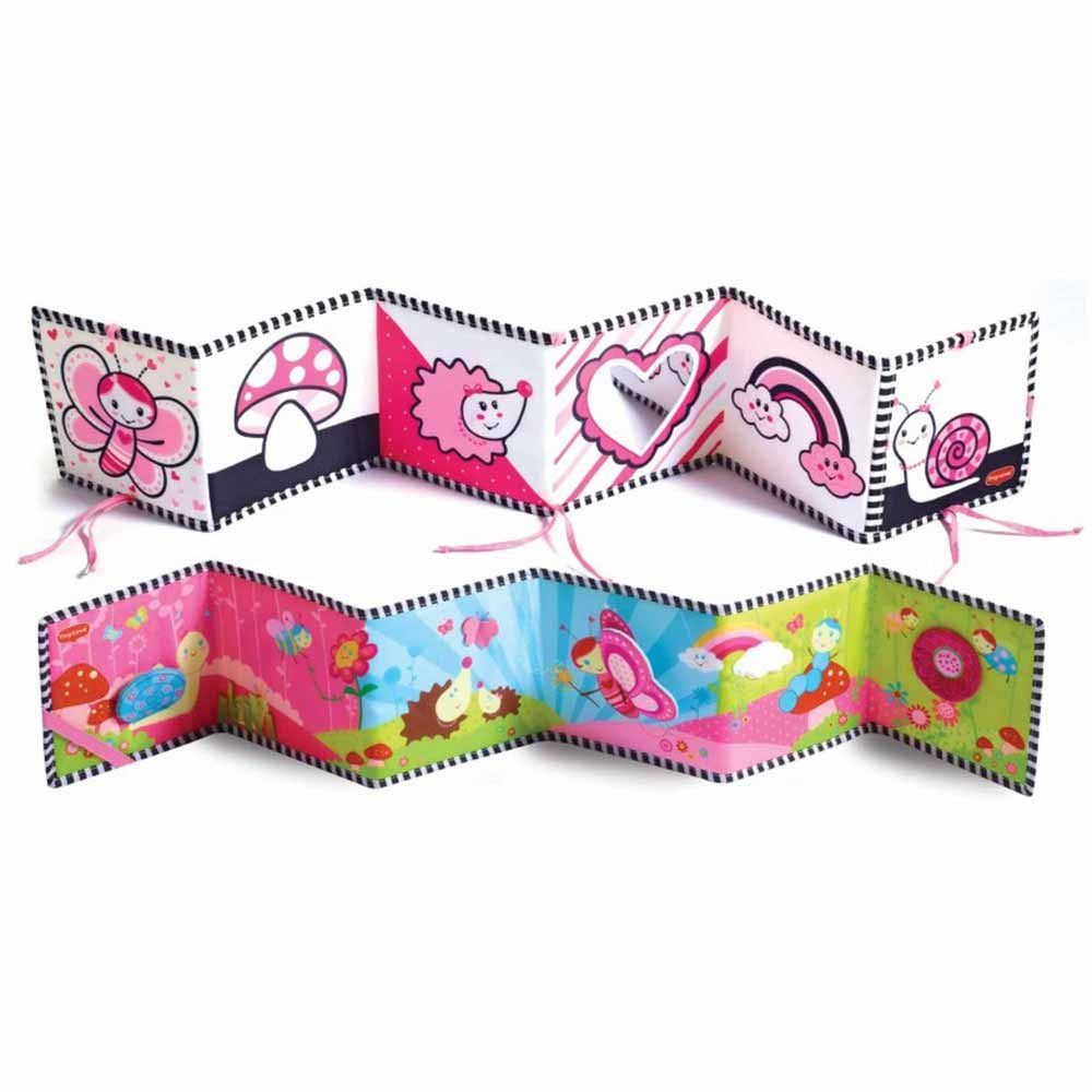 Моя первая книга "Маленькая Принцесса", Tiny Love. Её можно прикрепить к кроватке в виде бортика – для этого предусмотрены веревочки. Стороны книжки выполнены в разной цветовой гамме: более скромной (черно-розовый) и яркой, с объемными элементами. Развивает мелкую моторику, слуховое и цветовое восприятие ребенка. Книжку можно покупать детям с самого рождения, когда понятие цвета, звука и тактильные ощущения малышу еще предстоит изучить.