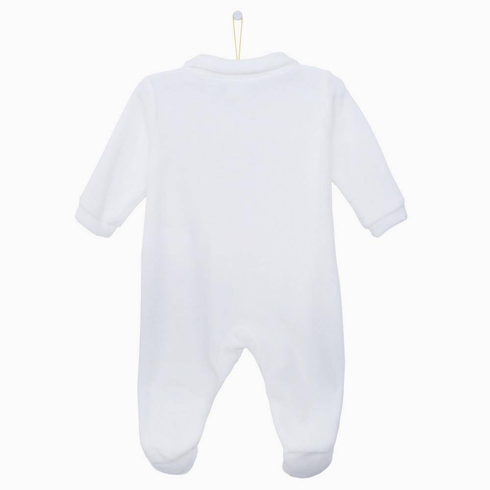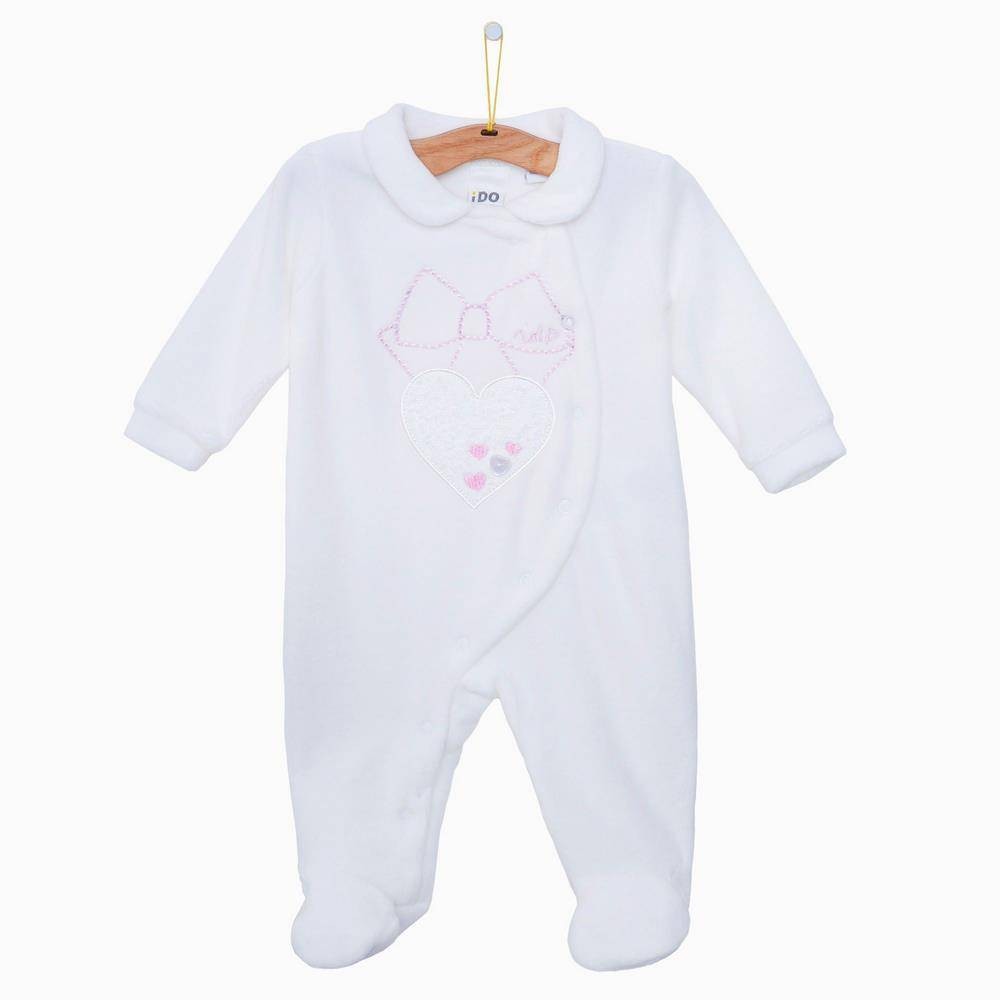 Восхитительный трикотажный велюровый комбинезон с воротничком застегивается спереди по всей длине на кнопки. Есть кнопки между ножек, что ускорит и облегчит смену подгузника. Украшен аппликацией в виде сердца и бантом со стразами и бусинами.