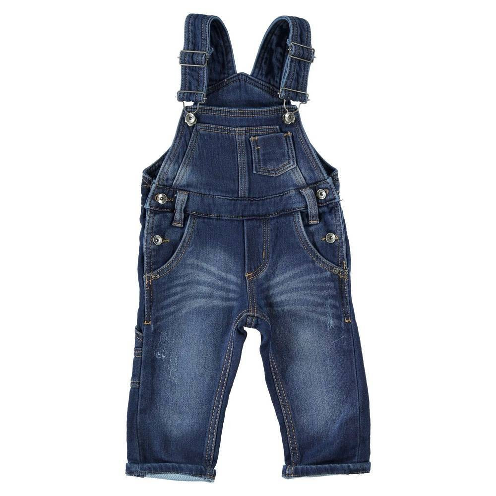 Стильный, удобный, практичный джинсовый комбинезон обязательный в гардеробе Вашего мальчишки. Джинсы с модными потертостями, длину можно регулировать шлейками, есть карманы спереди и сзади и на штанине. Штанины с отворотами, есть еще и боковые застежки на пуговицах.
