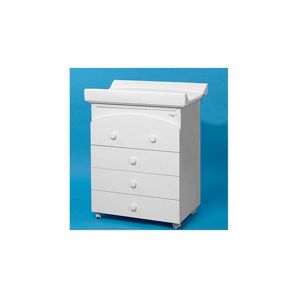 Комод Baby Italia BABYBATH, сочетающий в себе сразу несколько функций, станет настоящим украшением детской комнаты вашего малыша. Комод оснащен четырьмя вместительными ящиками, пеленальным столиком с высокими бортами и ванночкой. То есть все что необходимо для ухода за вашим малышом будет всегда у вас под рукой. Когда малыш подрастет, вы сможете снять ванночку, убрать пеленальный столик и у вас получится классический комод. Как и вся продукция итальянской компании, изделие имеет очень элегантный дизайн, декорирован резным рисунком.