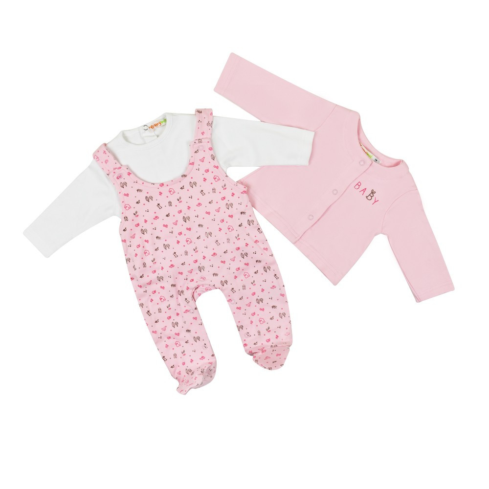 Комплект Babybol для новорожденной девочки состоит из 3 предметов (толстовки реглана и комбинезона). Толстовка застегивается спереди на кнопки, украшена вышивкой, реглан с застежками кнопками на спинке. Цветной комбинезон на шлейках с кнопками, что позволяет регулировать рост. Кнопки между ножек для удобства смены подгузника. Рисунок нанесенный на свитер в тон комбинезона.