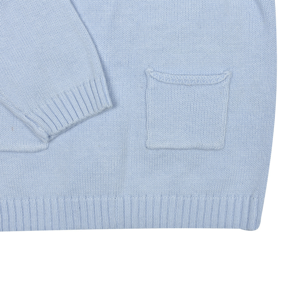 Вязанный комплект Babybol для новорожденного мальчика состоит из 2 предметов изготовленных из 100% хлопка. Трикотажный свитер, рукава - реглан, застежка пуговицы на спине по всей длине, спереди украшен накладными карманами. Внутри трикотажного пояса штанов вшита резинка. Простой, удобный, стильный комплект замечательное предложение на выписку из роддома, для праздничного мероприятия.
