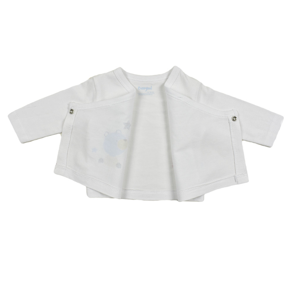 Замечательное и практичное предложения для новорожденного малыша - трикотажный комплект BabyBol изготовлен из 100% хлопка состоит из распашонки и ползунка. Распашонка спереди украшена веселым принтом, застегивается сбоку на кнопки. Однотонные ползунки на широком эластичном трикотажном поясе.