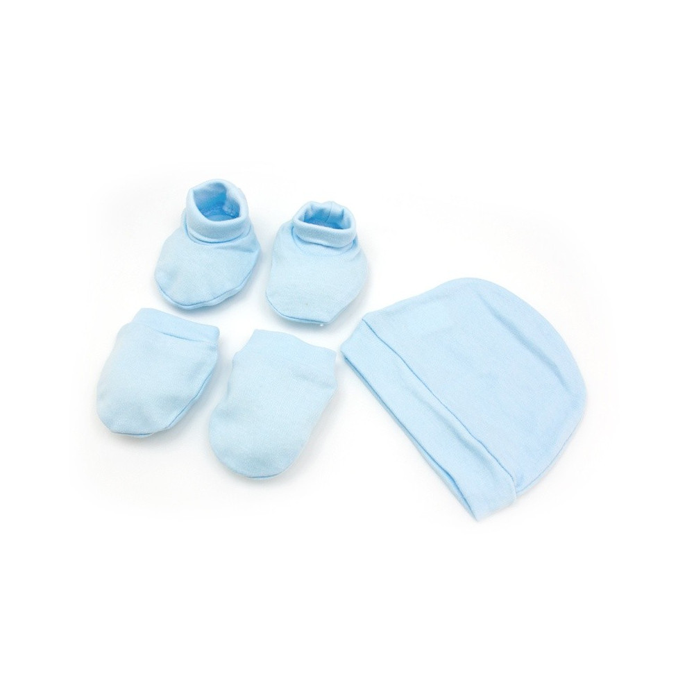 Прекрасный трикотажный комплект из 100% хлопка предлагаем нашим мамочкам. Шапочка, царапки и пинетки необходимы новорожденному ребенку, чтобы согреть и не поцарапать его нежную кожу.
