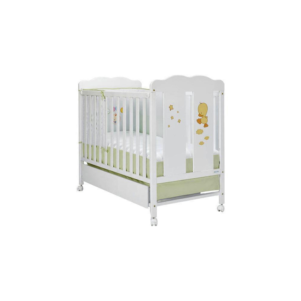 Смешной утёнок украшает детскую кроватку.