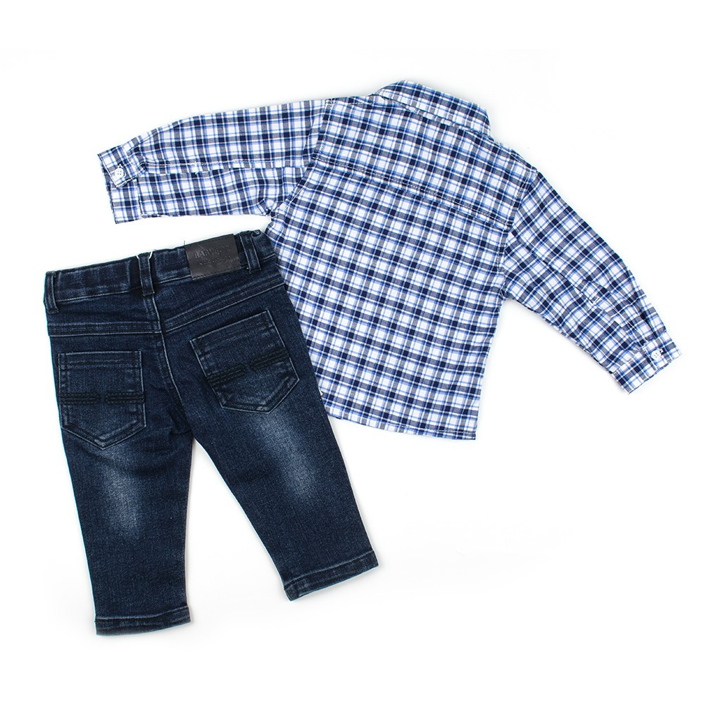 Комплект для мальчика Babybol клетчатая рубашка джинсы