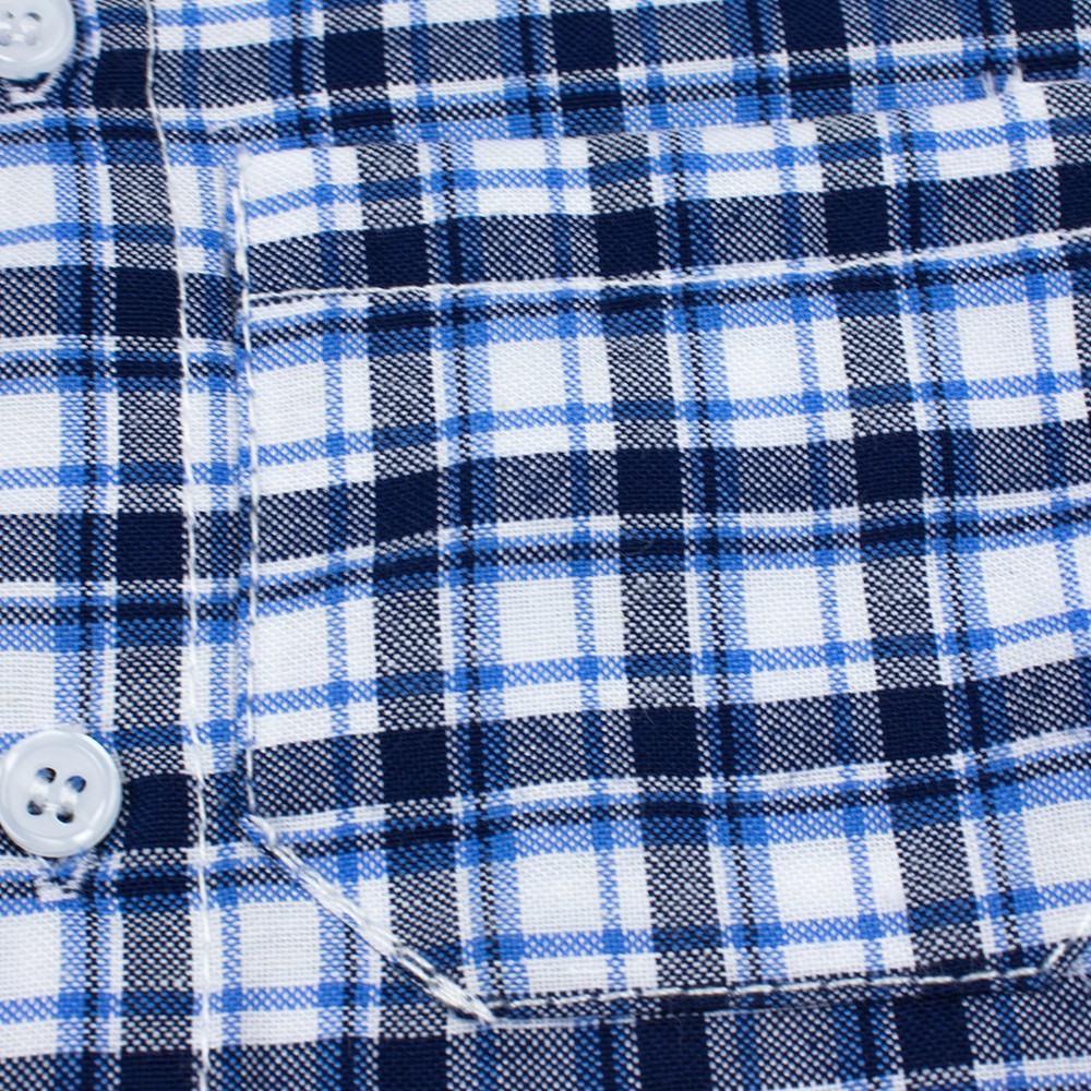 Цвет | рубашка - голубая клетка, джинсы - синий |