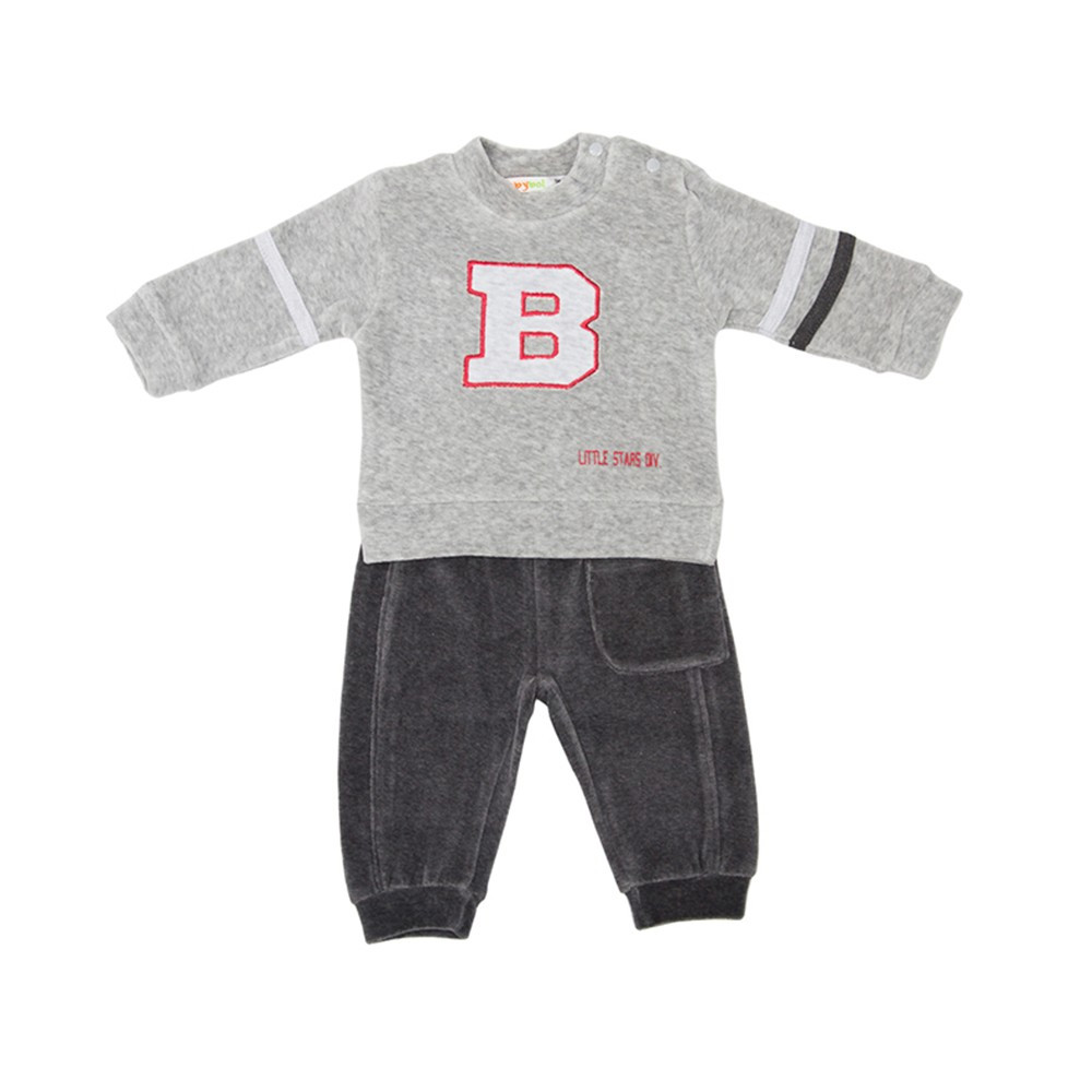 Удобный, модный, стильный велюровый комплект станет незаменимым вариантом для Вашего мальчугана для ежедневных прогулок в любую погоду. Мягкие трикотажные штаны с накладным карманом спереди, на эластичном поясе с вшитой резинкой, резинка с тесьмой, которая затягивается, снизу брюки на манжете. Свитер с кнопками на плече облегчит и ускорит процесс одевания ребенка.