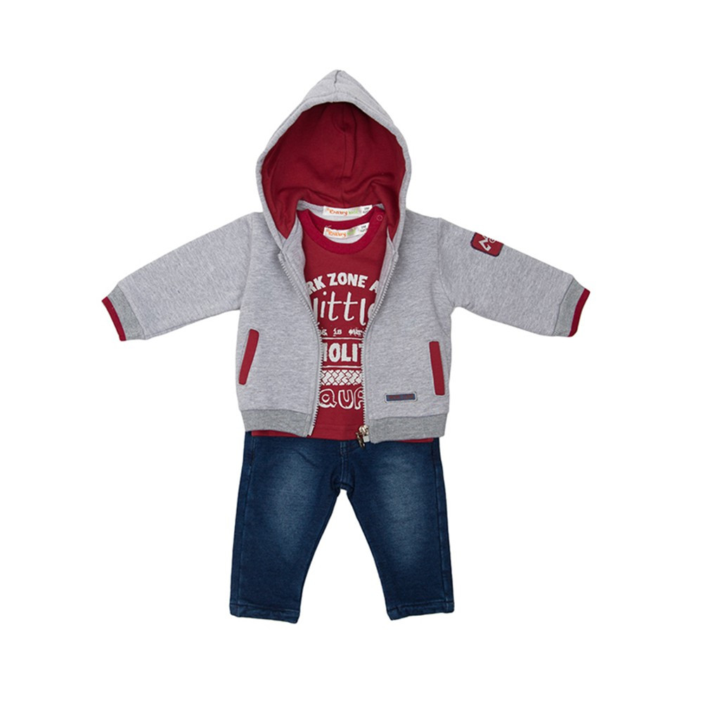 Стильный, модный, удобный комплект Babybol станет незаменимым вариантом в гардеробе Вашего мальчугана для ежедневных прогулок. Толстовка на флисе застегивается на молнию манжеты на рукавах и карманах имеют красную трикотажную резинку в тон реглана, подкладка в капюшоне тоже в цвет реглана. Спереди на реглан нанесен графический рисунок, застежки кнопки на плече только для размеров до 3 лет. Завершают прекрасный ансамбль мягкие джинсы с вшитой в пояс резинкой, которая затягивается, что позволяет регулировать объем талии.