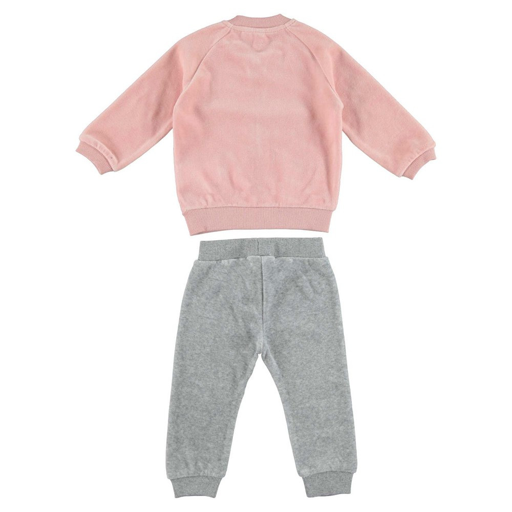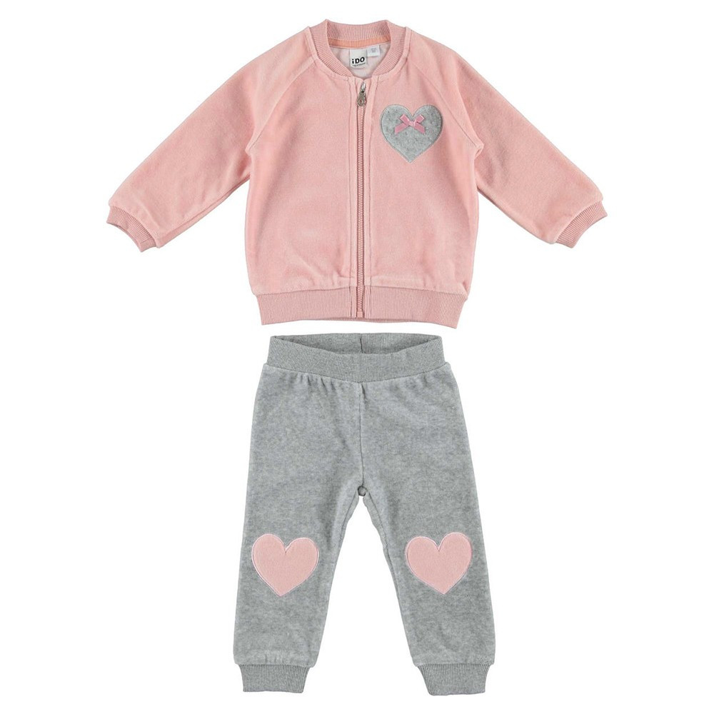 Восхитительный мягкий велюровый комплект для девочки состоит из толстовки на молнии и штанишек .Толстовку украшает вышивка с аппликационным сердцем в цвет штанишек, стразы и бантик. Штанишки украшены сердечками на коленях в цвет свитера, в поясе на талии есть шнурок, регулирующий ее объем. Поможет сохранить форму во время стирки трикотажная резинка на горловине, талии, манжетах на рукавах и на лодыжках.