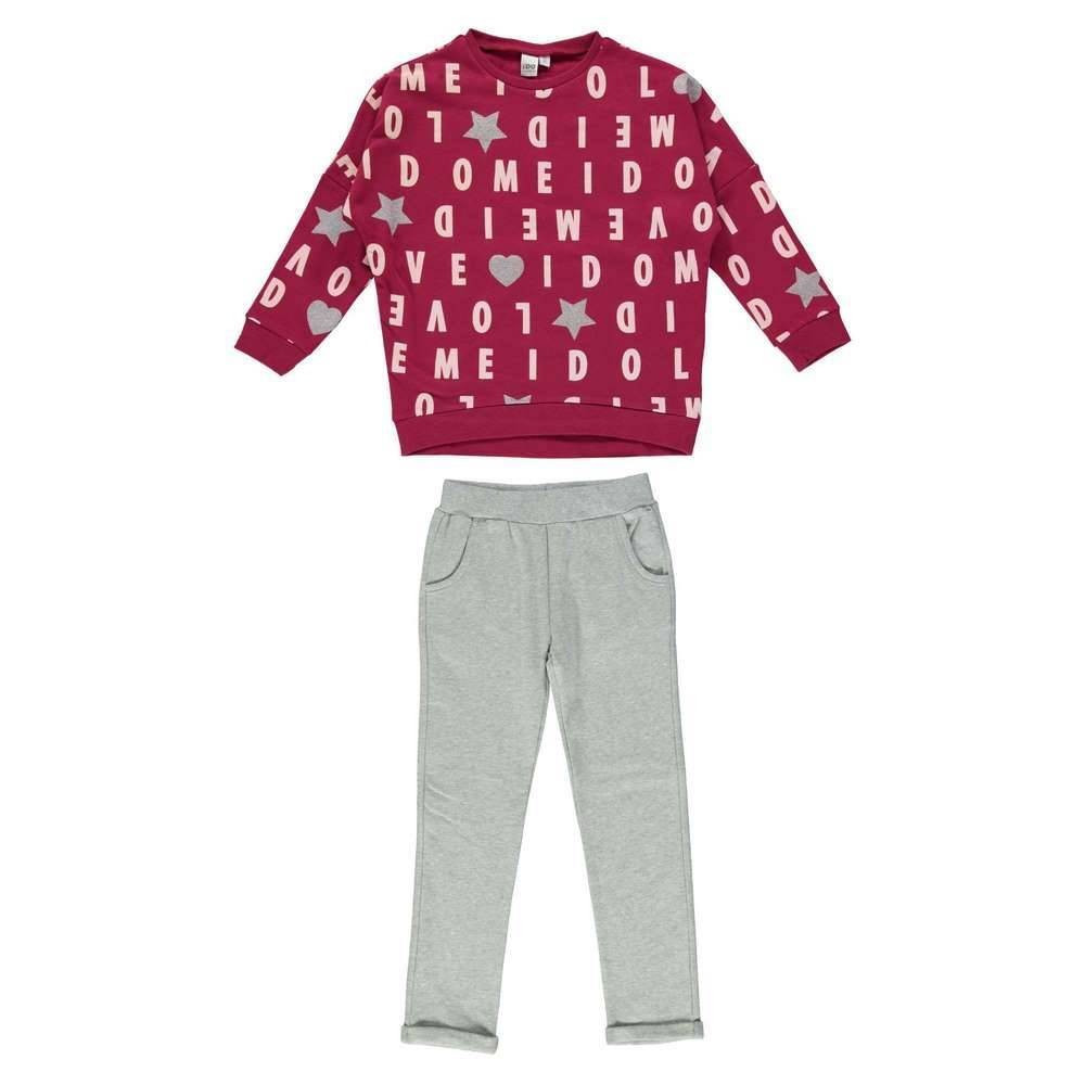 Трикотажный хлопковый комплект IDO состоит из свитера и штанов. На свитер нанесен печатный принт в тон штанов. Горловина, манжеты на рукавах, пояс на талии трикотажная двойная эластичная резинка. Штаны по бокам имеют карманы, снизу есть небольшие отвороты. Пояс на талии имеет еще и шнурок, что позволяет регулировать ее объем.