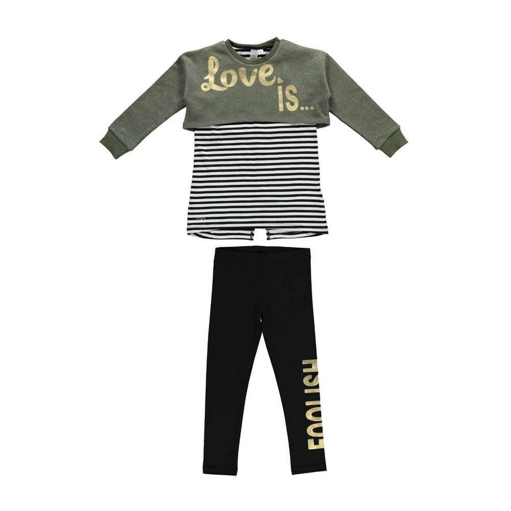 Цвет: толстовка - зеленый, майка - черно-белая полосатая, леггинсы- черный.
