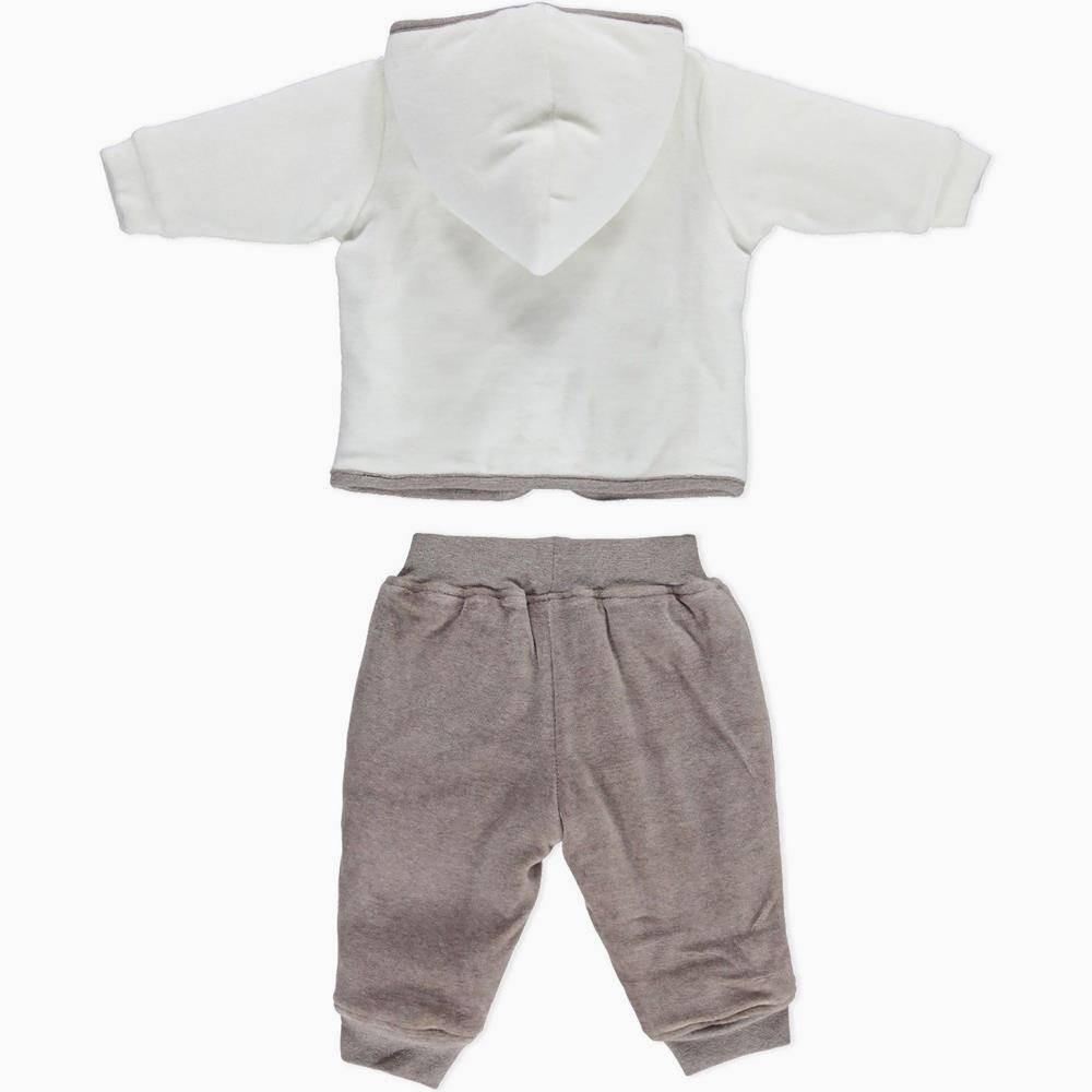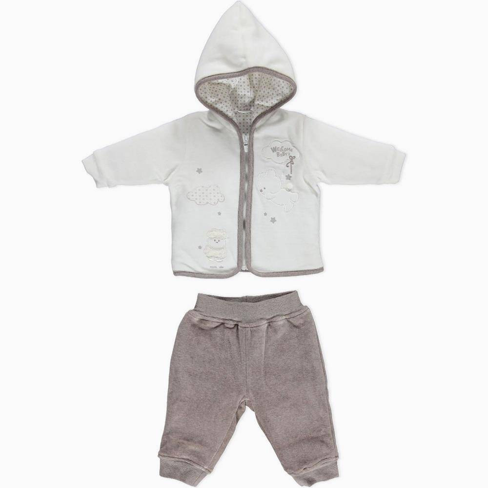 Демисезонный трикотажный велюровый комплект свитер и штаны не будут лишними в гардеробе Вашего ребенка. Свитер с капюшоном, на молнии, с контрастной бейкой в цвет штанишек веселой детской аппликацией не останется без Вашего внимания. Манжеты на лодыжках, пояс на талии штанишек однотонная двойная трикотажная резинка.