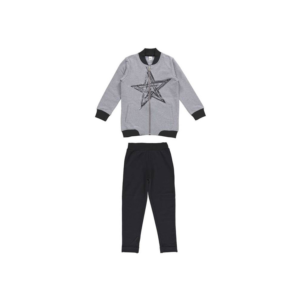 Прекрасный спортивный костюм iDO для девочек выполнен из шерстяного флиса. Толстовка имеет застежку-молнию, которая длиннее, чем стандартная. Воротник, манжеты, пояс на талии трикотажная резинка одного цвета со штанами. Передняя часть украшена печатной звездой со стразами. Плотно прилегающие штаны имеют трикотажную резинку на поясе со шнурком и манжетах.