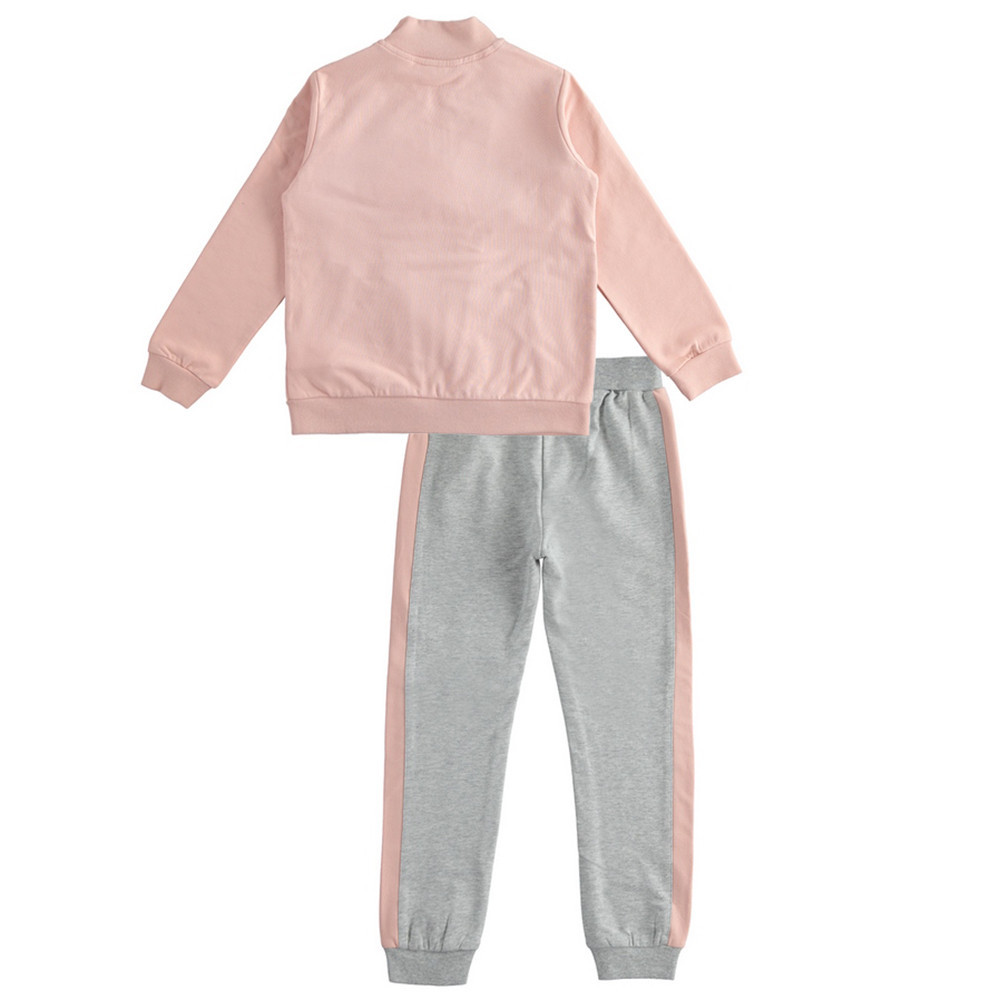 Симпатичный спортивный костюм іDO состоит из двух деталей - толстовки бомбера и штанов выполненных из трикотажного хлопкового флиса. Толстовка застегивается спереди на молнию и декорирована вставками. Эластичные брюки с прямыми штанинами, пояс на талии на двойной трикотажной резинке с внутренним шнуром, позволяющим регулировать ее объем. Для девушки мир цветов сладок и женственен: розовый в сочетании с серым и кремовый возвращается