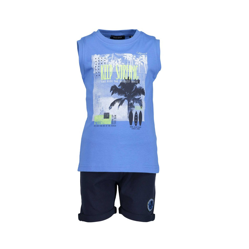 Трикотажный комплект (шорты и майка) отличный вариант для спорта и отдыха. Спереди футболку украшает принт, шорты - эластичная трикотажная резинка на талии и отвороты на штанине. Размер изделия определяется ростом Вашего ребенка.