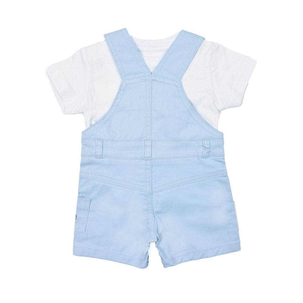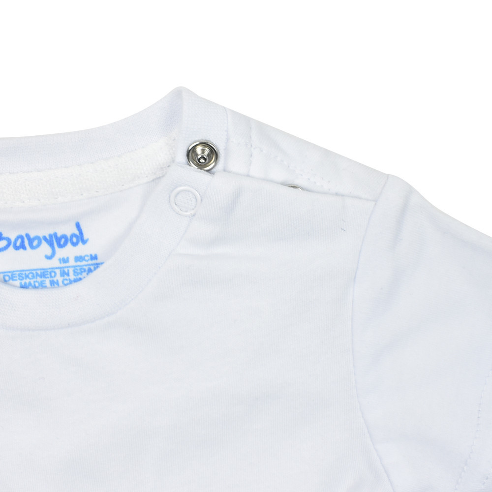 Прекрасный стильный летний комплект Babybol изготовленный из 100% хлопка состоит из комбинезона и футболки необходим Вашему новорождённому мальчугану для ежедневных прогулок. Летний комбинезон на лямках с пуговицами в несколько рядов, что позволяет регулировать рост. Пуговицы по бокам и кнопки между ножек облегчат и ускорят процесс одевания и смены подгузника. Украшают комбинезон принт по центру и боковой накладной отстроченный карман. Однотонная белая футболка с кнопками на плече облегчит процесс одевания и дополнит Ваш образ.