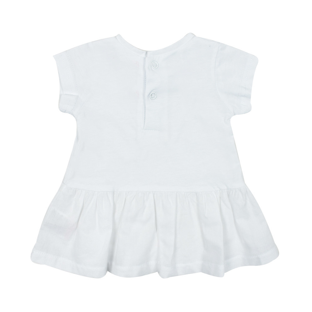 Замечательный летний комплект Babybol для девочки состоит из футболки и джинсовых шорт. Комплект изготовлен из хлопка. Футболка спереди декорирована пышной оборкой с аппликацией, застежка кнопки на спинке. Кнопки для размеров до 3 лет, облегчат и ускорят процесс одевания. Короткие джинсовые шорты с отворотами имеют в поясе резинку и пуговицы, что позволит регулировать объем талии. Карманы украшены аппликацией, как и футболка.