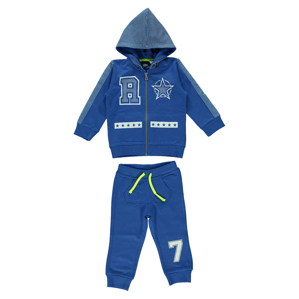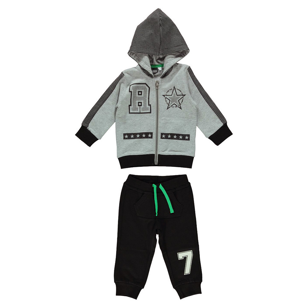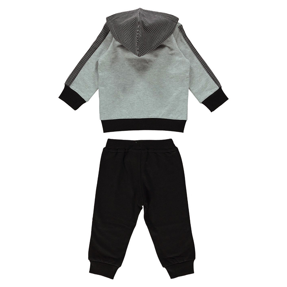 Этот трикотажный спортивный костюм идеально подходит для прогулок. Толстовка на молнии с вставками на рукавах и капюшоном в клетку декорирован спереди принтом. Штаны с карманом кенгуру, трикотажный эластичный пояс и манжеты спортивных штанов одного цвета . Талия регулируемая вшитым в поясе контрастным шнуром.