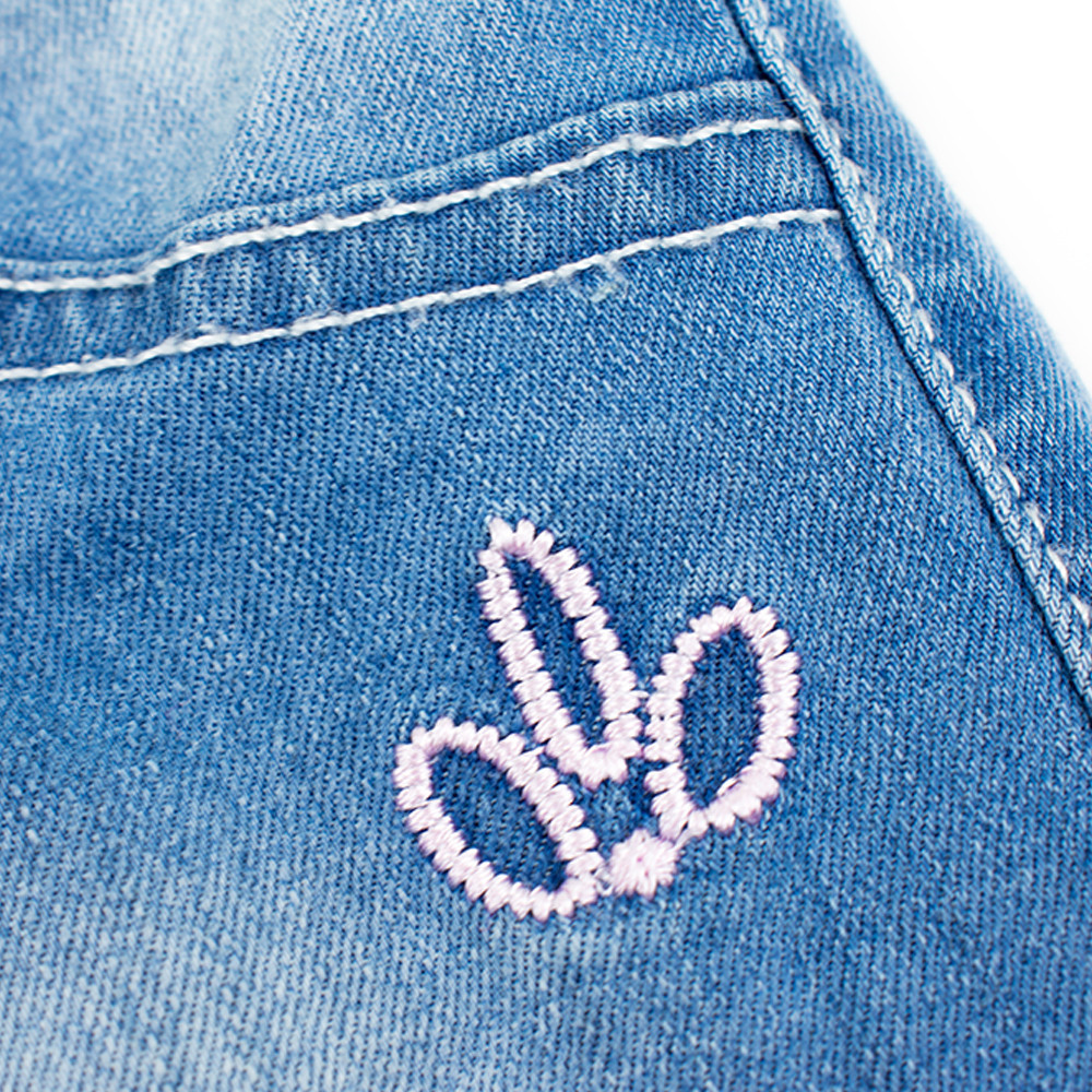 Замечательный летний комплект Babybol для девочки состоит из футболки и джинсовых шорт. Комплект изготовлен из хлопка. Спереди небольшие складки, застегивается футболка на спинке перламутровыми пуговицами. Короткие джинсовые шорты с модными потертостями, с вышивкой, с отворотами имеют в поясе внутреннюю резинку и пуговицы, что позволит регулировать объем талии. Имеются еще и два накладных кармана сзади.
