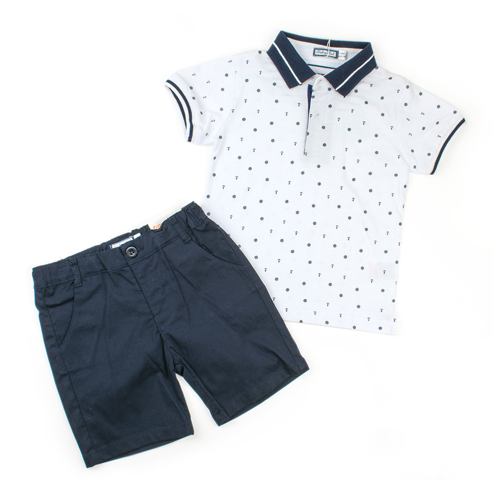 Стильный комплект Babybol состоящий из футболки поло и шорт непременно понравится Вашему ребенку. Трикотажная футболка поло с абстрактным рисунком и накладным передним карманом, разрезами по бокам, декорирована трикотажным однотонным воротником. Застегивается спереди на пуговицы. Шорты никогда не выходят из моды и всегда нужны в гардеробе Вашего ребенка. Модные и стильные, с передними прорезными карманами. Объем талии регулируется вшитой в поясе резинкой, которая затягивается на на внутренние пуговицы. Гульфик без молнии, застежка - пуговица. В этом ансамбле Ваш ребенок всегда будет выглядеть модно и стильно.