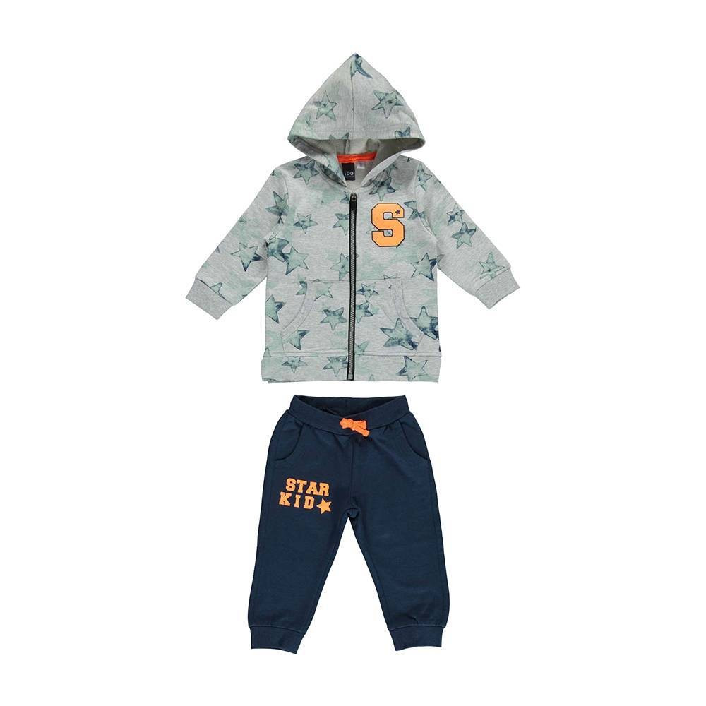 Этот спортивный костюм с капюшоном iDO выполнен из 100% хлопка - легкого флиса. Удобный,стильный, практичный. Свитер с напечатанным звездным рисунком по всему полю. Капюшон, карманы кенгуру и аппликация украшают свитер. Штаны комплекта контрастного цвета по отношению к свитеру и имеют контрастную ленту внутри пояса, для регулировки талии. Широкие манжеты и аппликация на штанине служат украшением спортивного костюма.